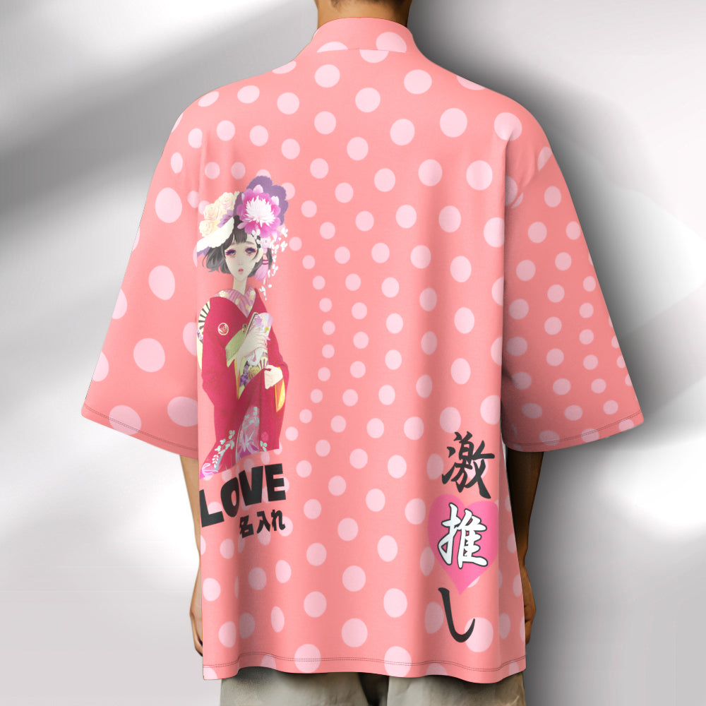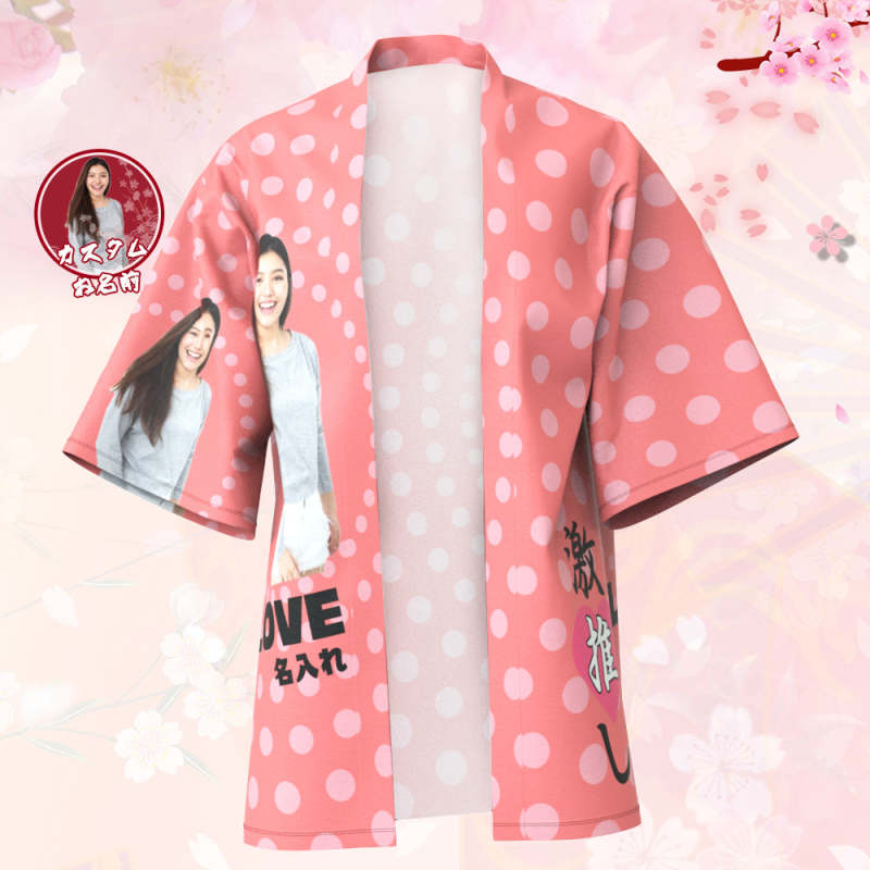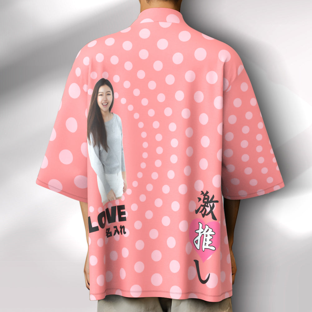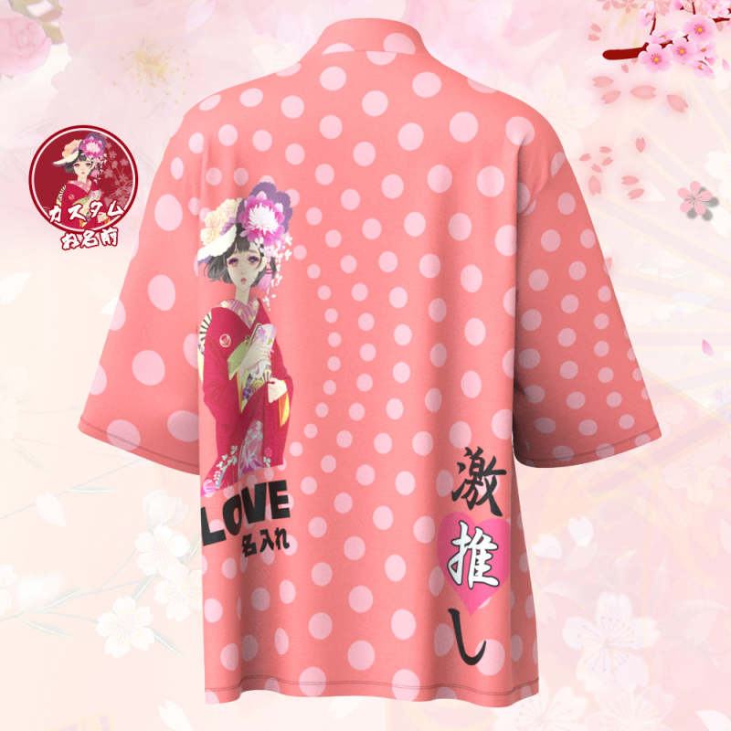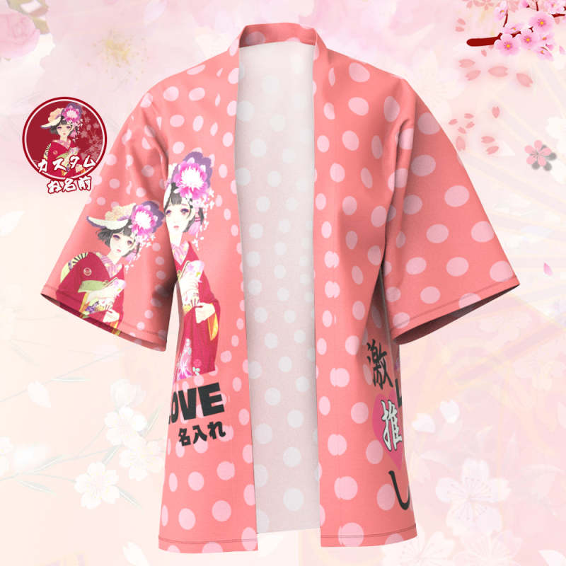 • 着物デザイン:七分袖、和装スタイル、ボタンなし、前開襟、ゆったり、カジュアルショートカーディガン、お好きな名前や写真でデザインできます。
