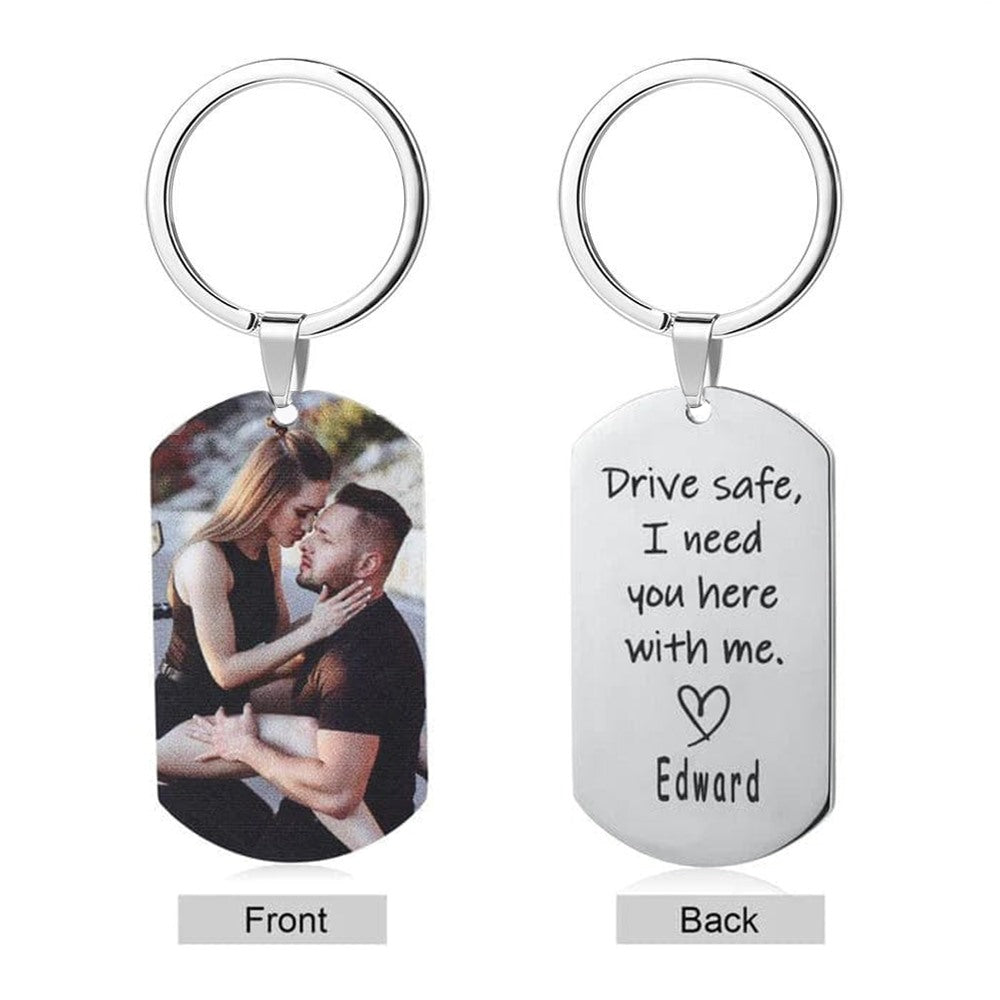 カップル用の写真刻印タグ キーホルダー ブラック。パーソナライズされたキーチェーンは誰にとっても必須です。文字通り着用者に合わせてカスタマイズされた、ユニークな方法で着飾る素敵な方法です。 Giftlab には、手頃な価格のカスタマイズされたジュエリーのオプションが豊富にあり、誕生日、休日、記念日、ただの理由、母の日など、あらゆる種類の機会に最適なギフトになります。レトロなスタイルのアイテムが好きな人は、ネームプレートネックレスを手に入れる必要があります。さまざまなフォントや金属を使用したさまざまなスタイルからお選びいただけます。特別な瞬間を捉えるために、ギフトラボでは、さらに特別なものにするために彫刻もできるピクチャー ジュエリーをご用意しています。兄弟や子供からパートナーやペットに至るまで、あらゆるもののスナップショットを追加すると、常に彼らをより近くに保つことができます。