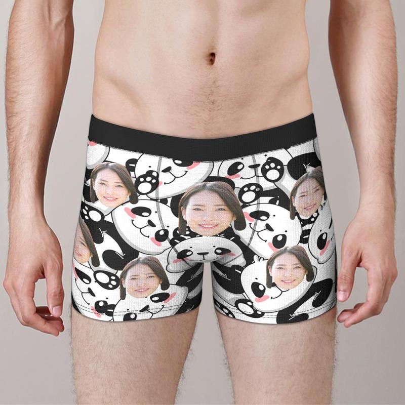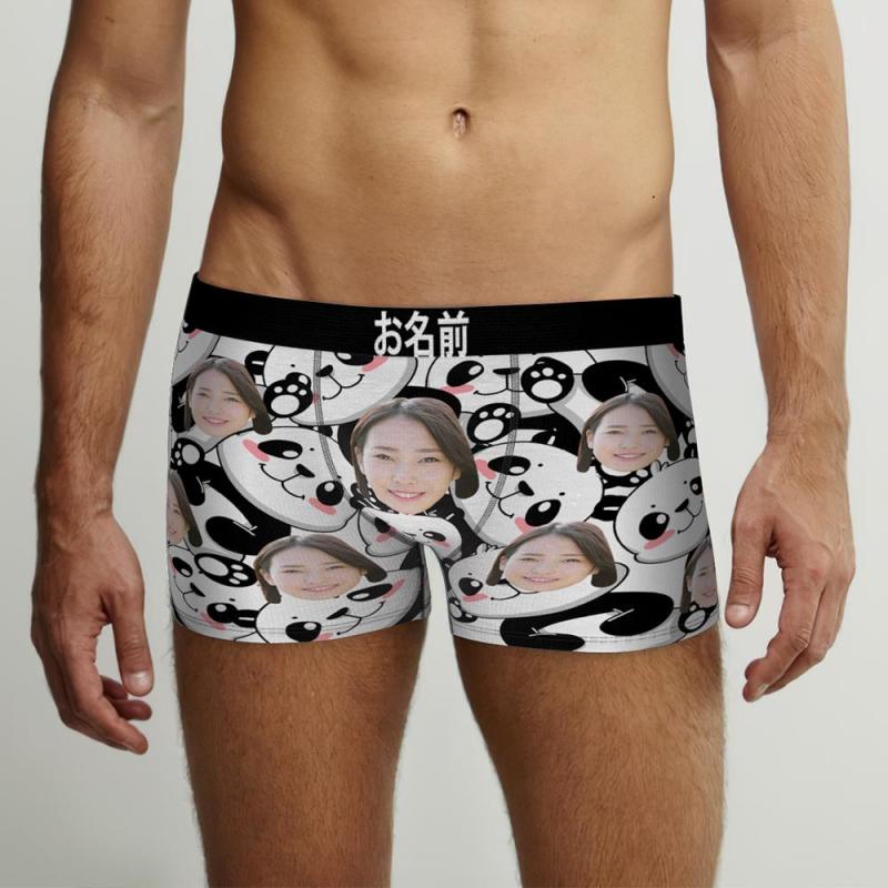 カスタムフォトボクサーパンツ-写真とテキスト入れ可能な超可愛いパンダの下着彼氏や旦那へのギフト