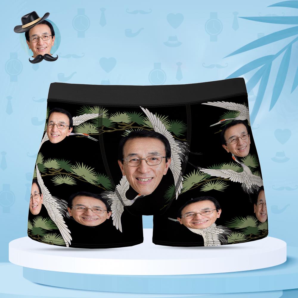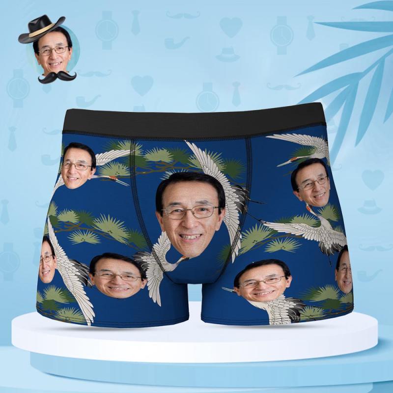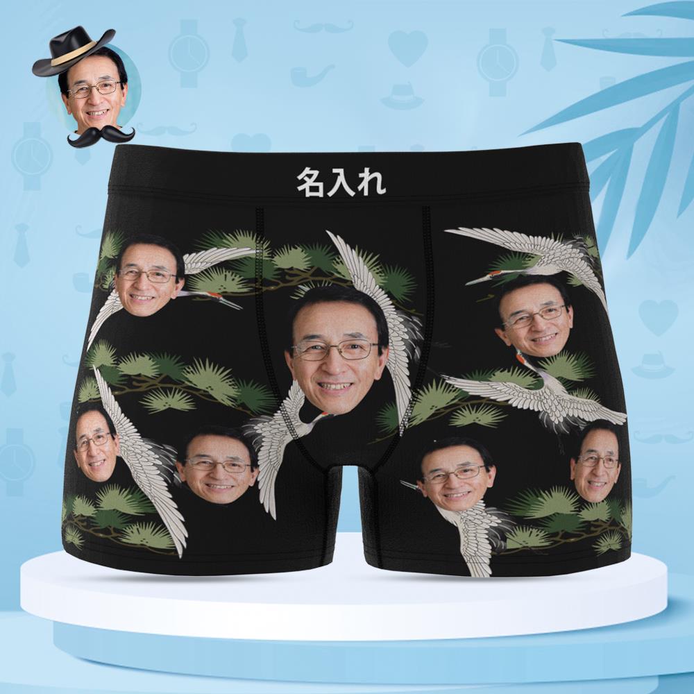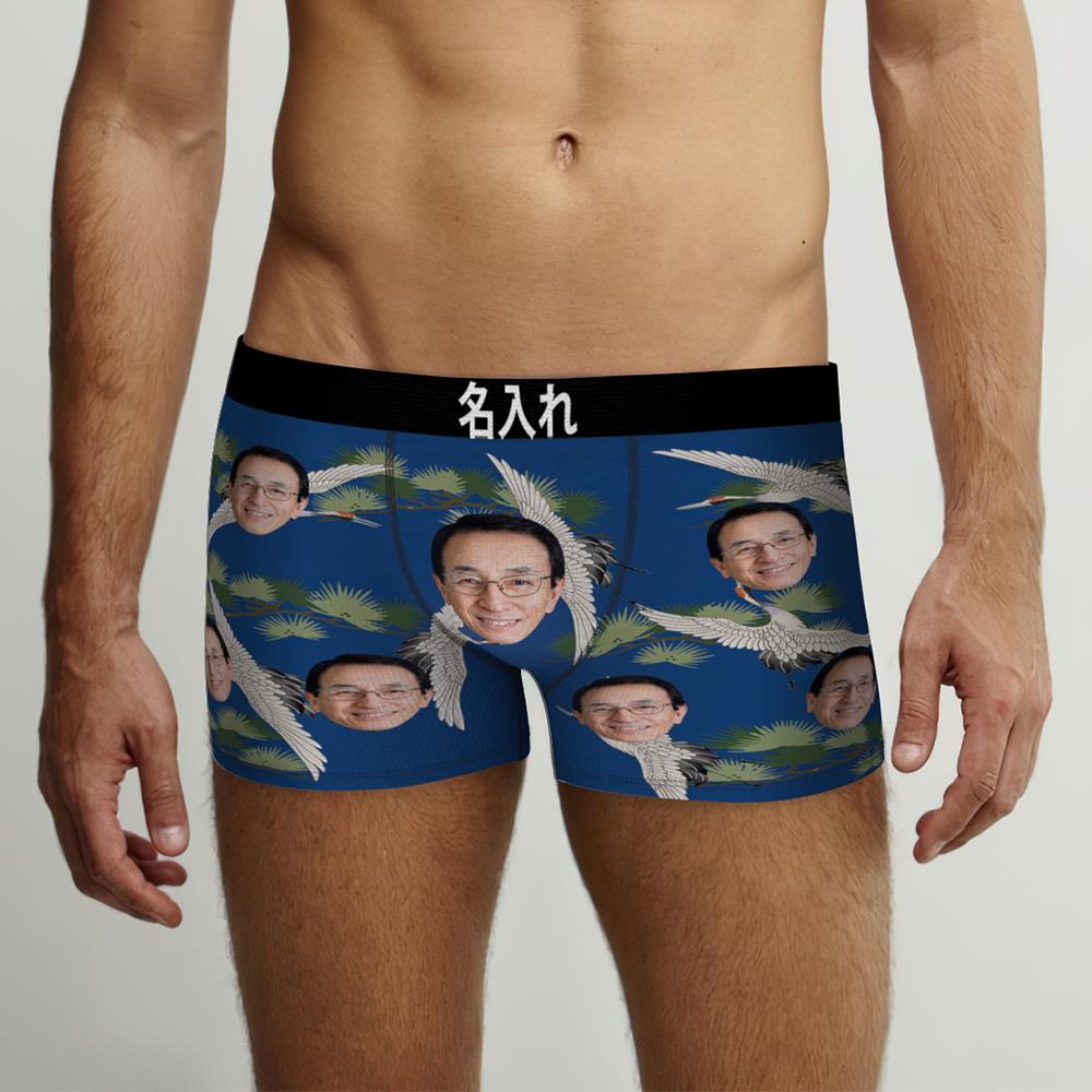 カスタムフォトボクサーパンツ-写真や名入れ可能な鶴と松柄の父の日プレゼント