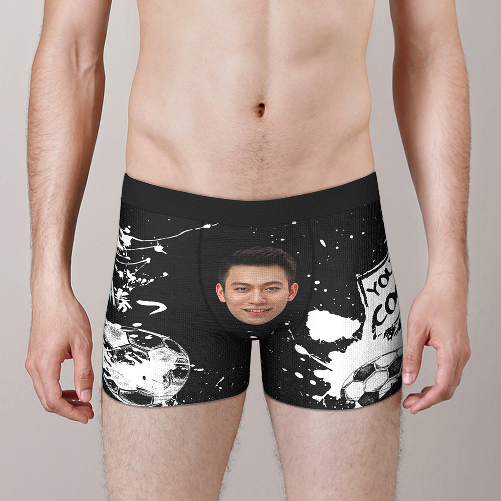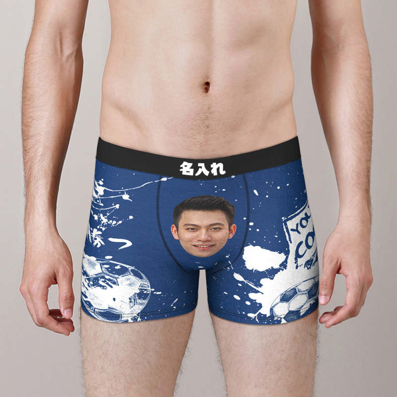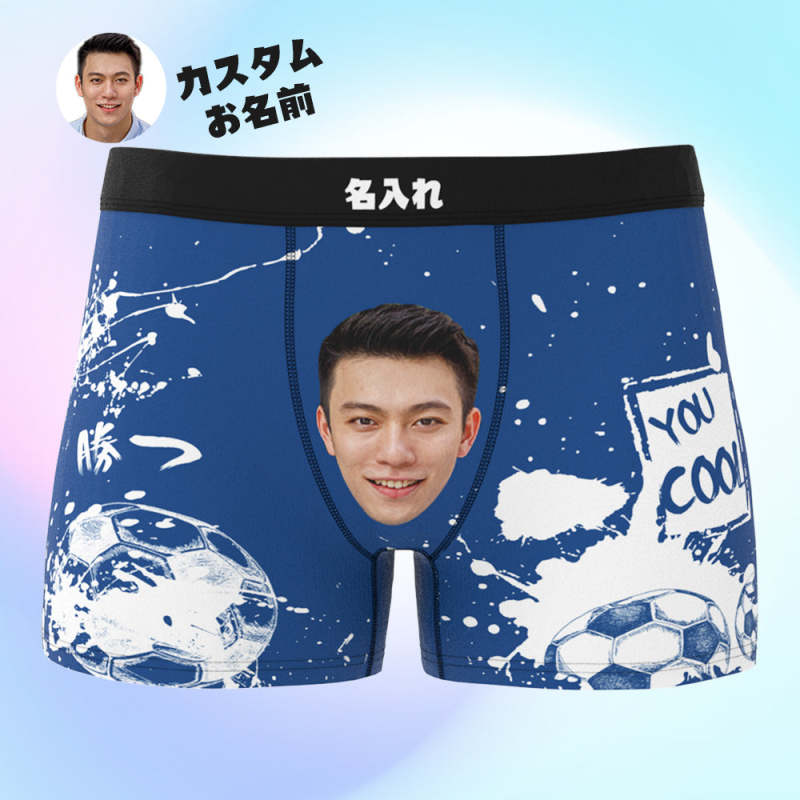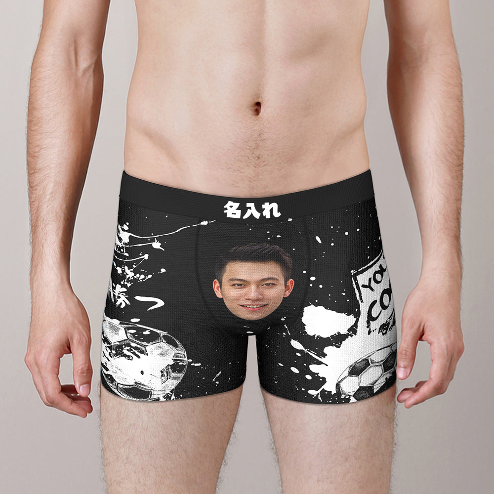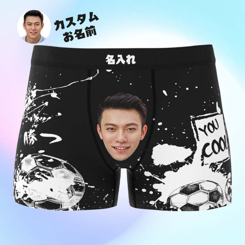 カスタム写真ボクサーパンツ-写真と名前入れ可能なサッカーボール柄のオリジナル下着ショーツギフト