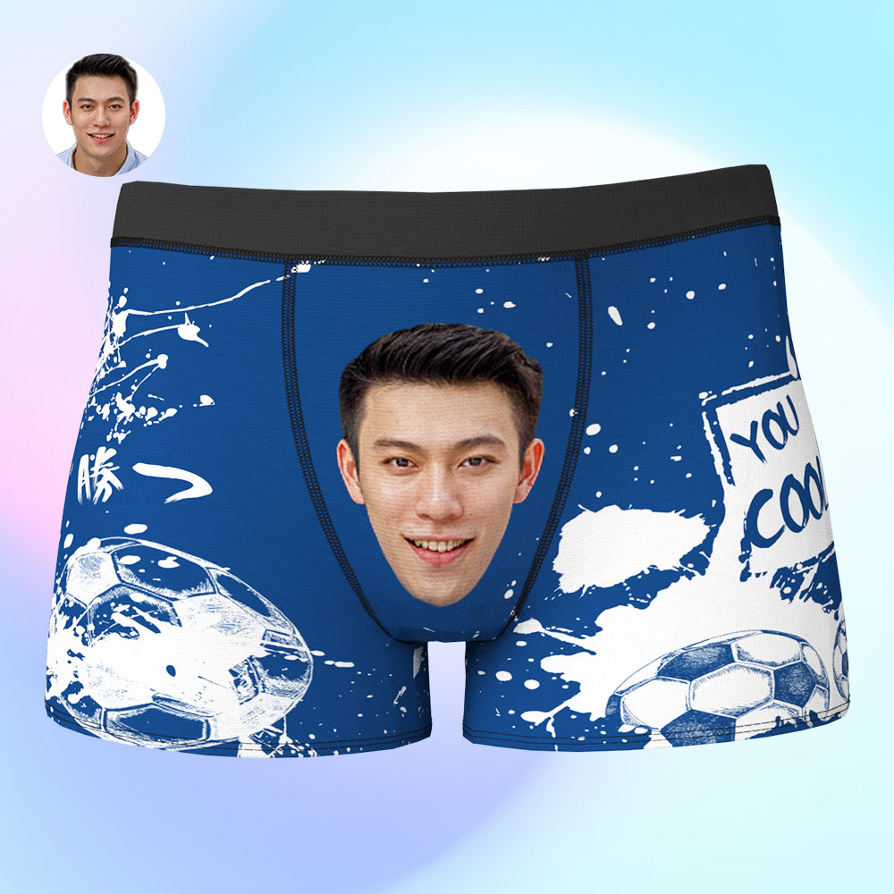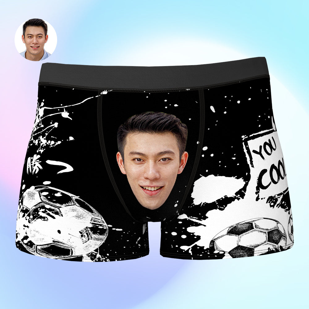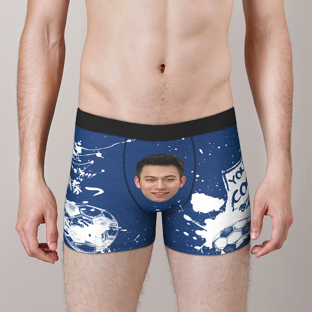 カスタム写真ボクサーパンツ-写真と名前入れ可能なサッカーボール柄のオリジナル下着ショーツギフト