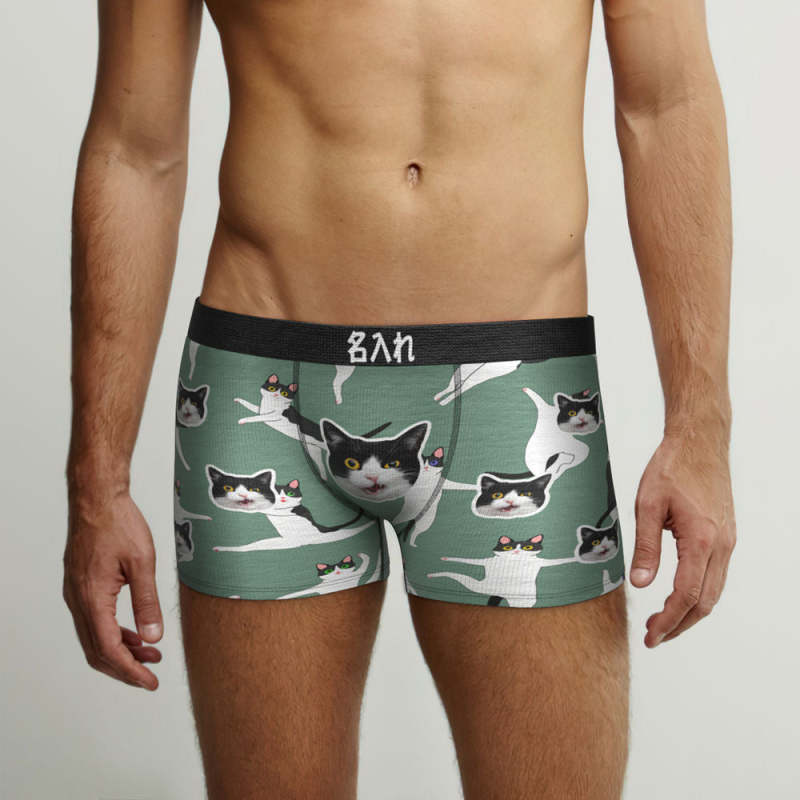 カスタム写真ボクサーパンツ-写真や名前入れ可能な踊る猫柄のオリジナル下着ショーツギフト