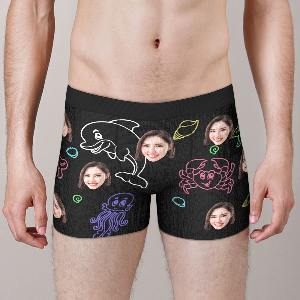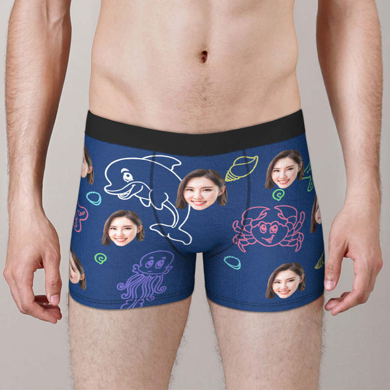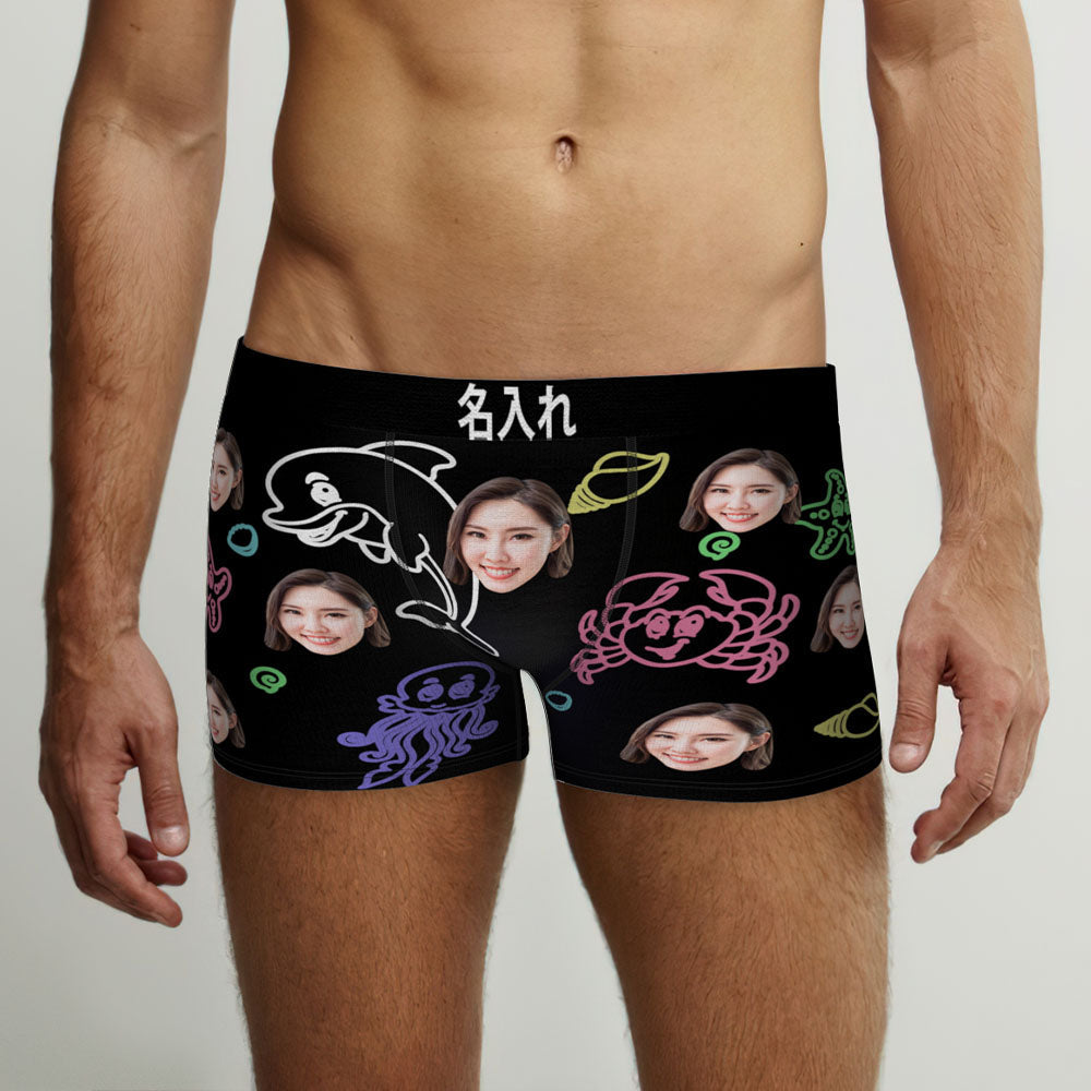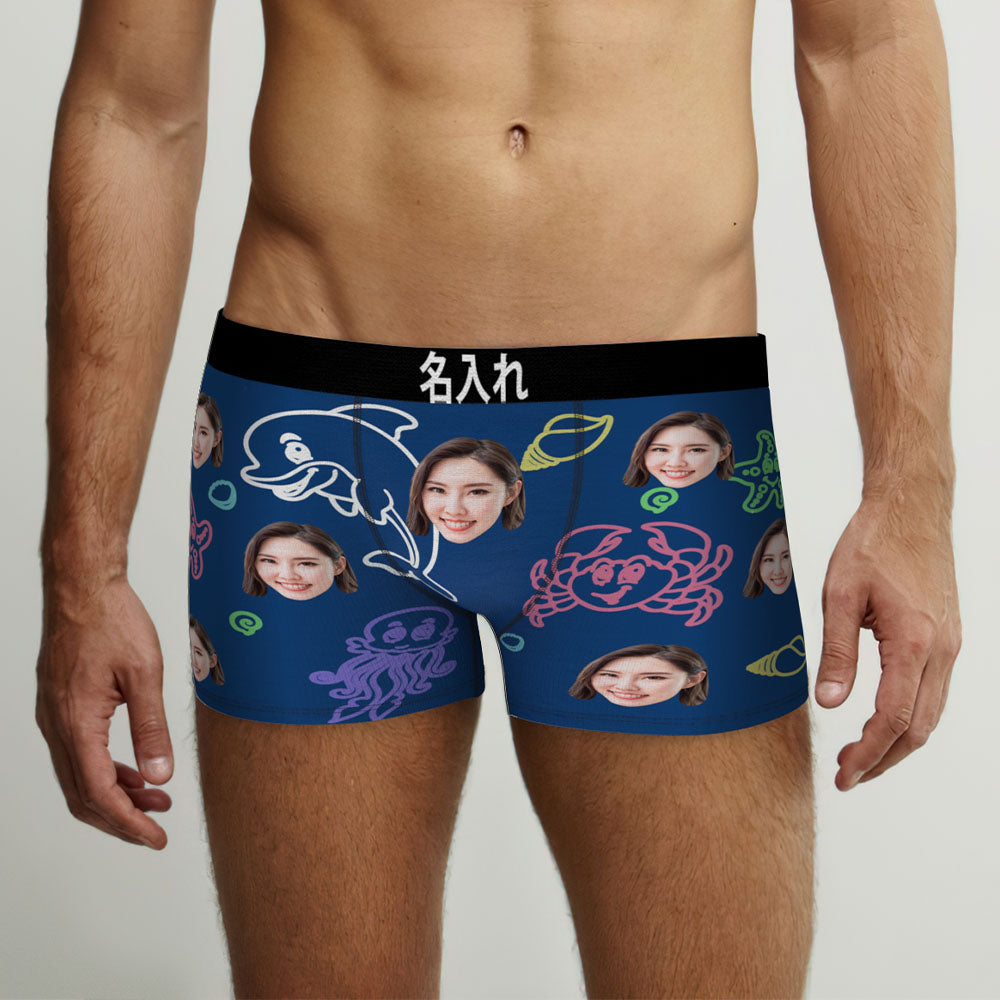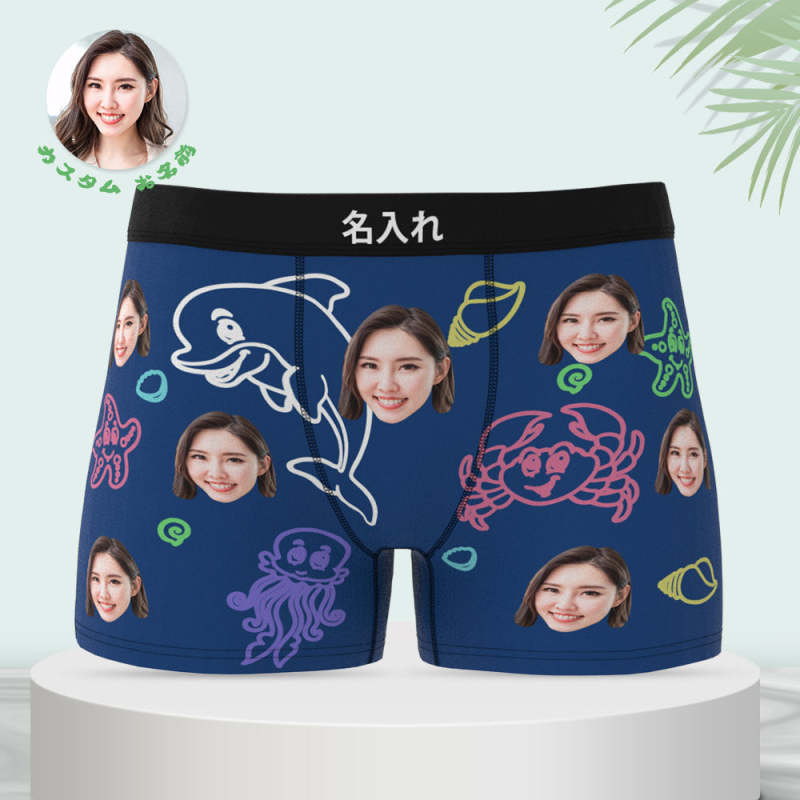 カスタム写真ボクサーパンツ-写真や名前入れ可能な可愛い海の生物柄の下着ショーツギフト