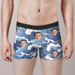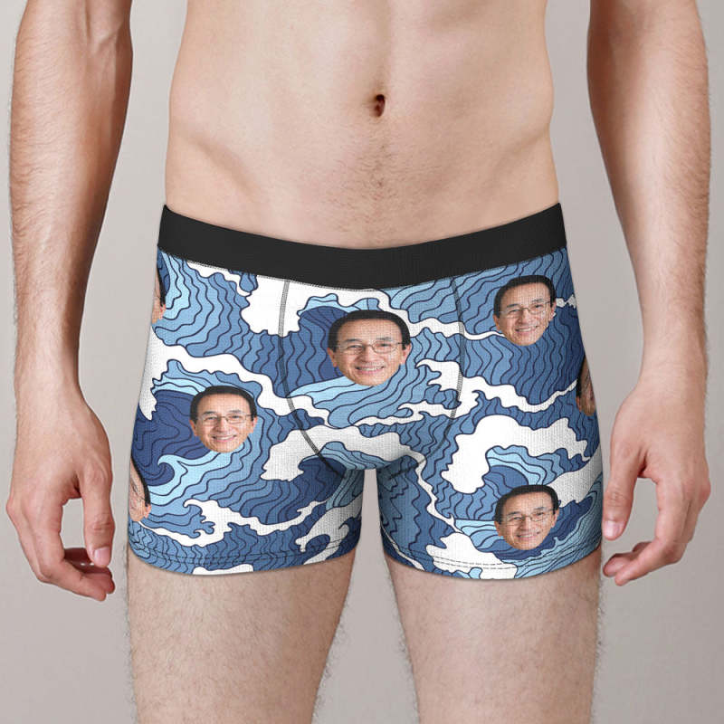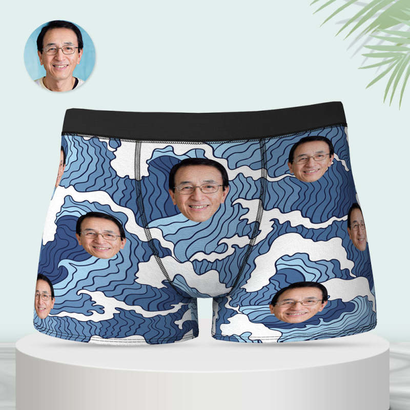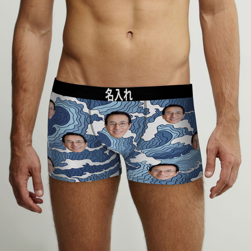 カスタム写真ボクサーパンツ-写真や名前入れ可能な海の波柄の下着ショーツギフト