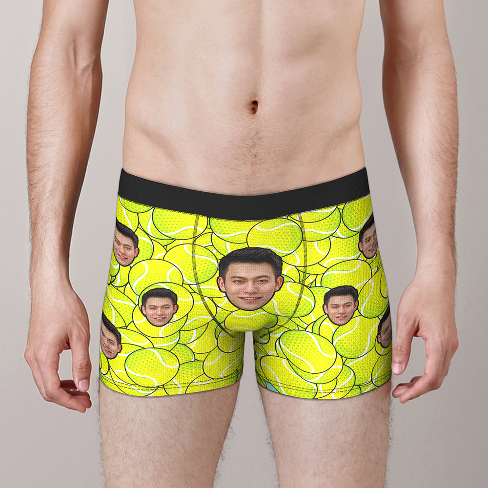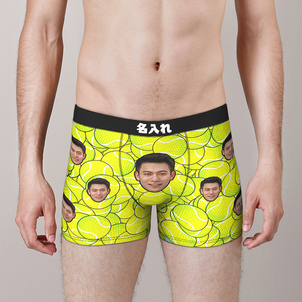 カスタム写真ボクサーパンツ-写真と名前入れ可能なテニス柄のオリジナル下着ショーツギフト