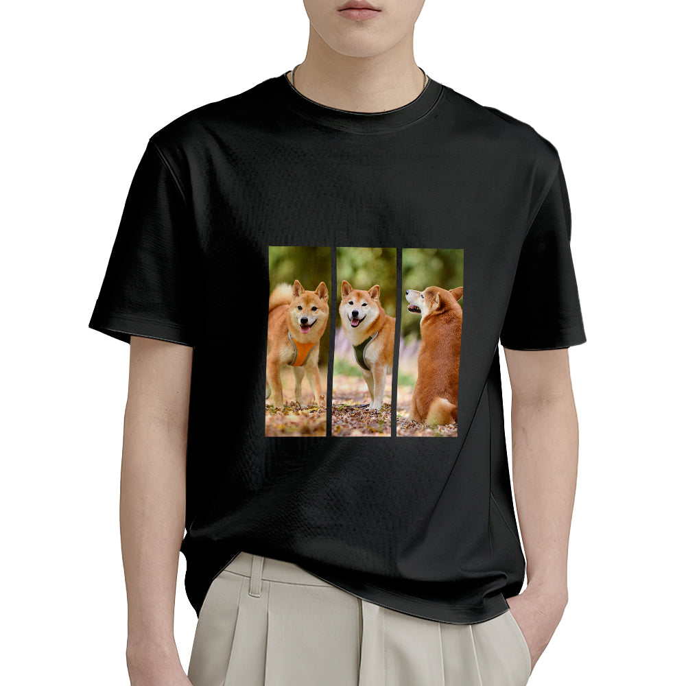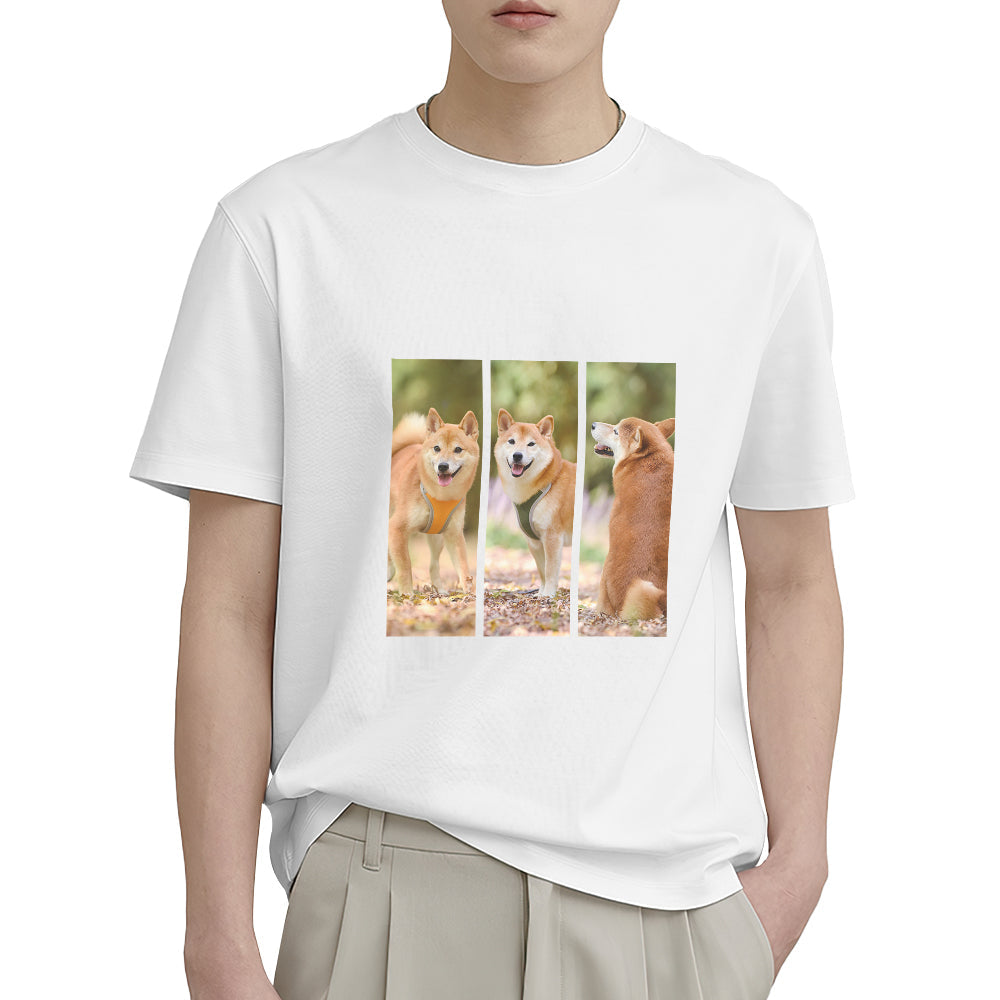カスタムフォトTシャツ - 写真3枚入れ可能なペット写真T-SHIRTプレゼント