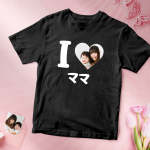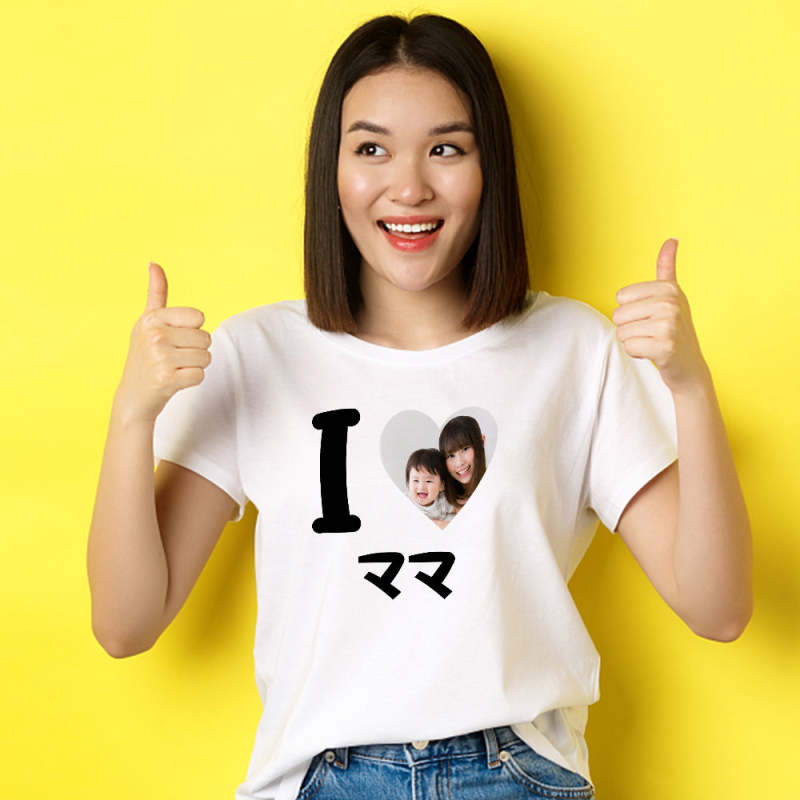カスタムフォトTシャツ - 写真入れ可能なオリジナル母の日写真T-SHIRTプレゼント - I ♥ ママ