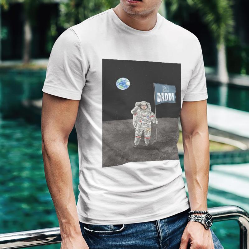 カスタム写真Tシャツ - 写真入れ可能なT-SHIRTギフト父の日プレゼント - 月宇宙飛行士