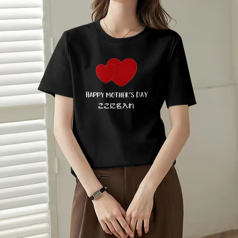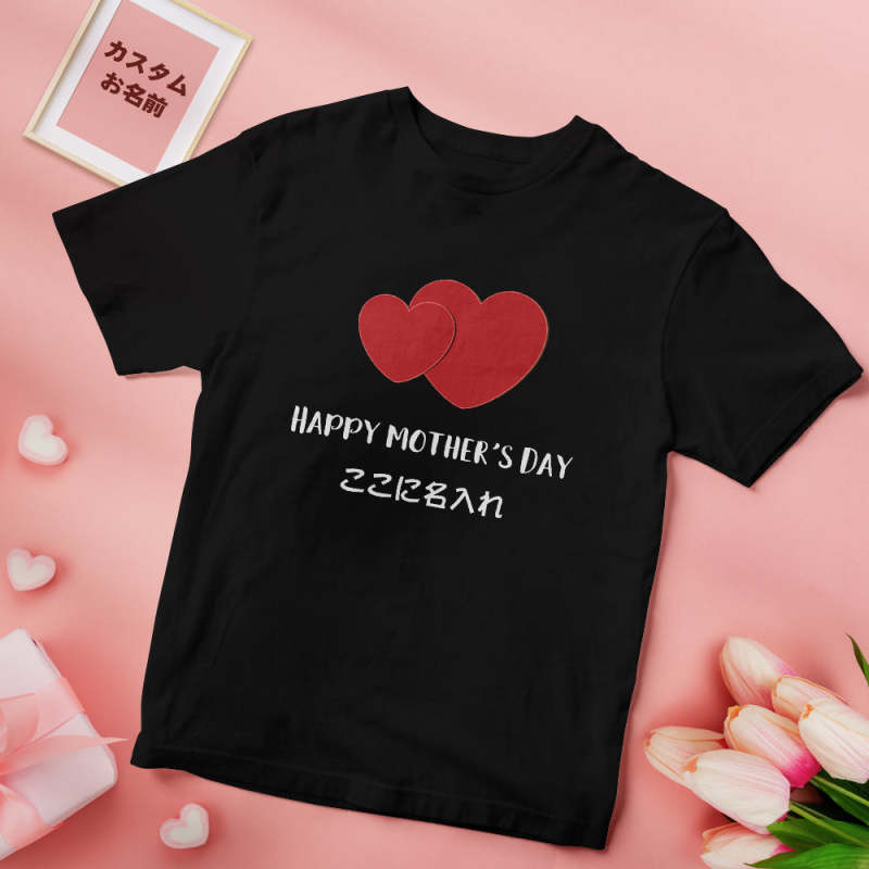 カスタム名前Tシャツ - テキスト入れ可能なT-SHIRTギフト母の日プレゼント - 二つのハート