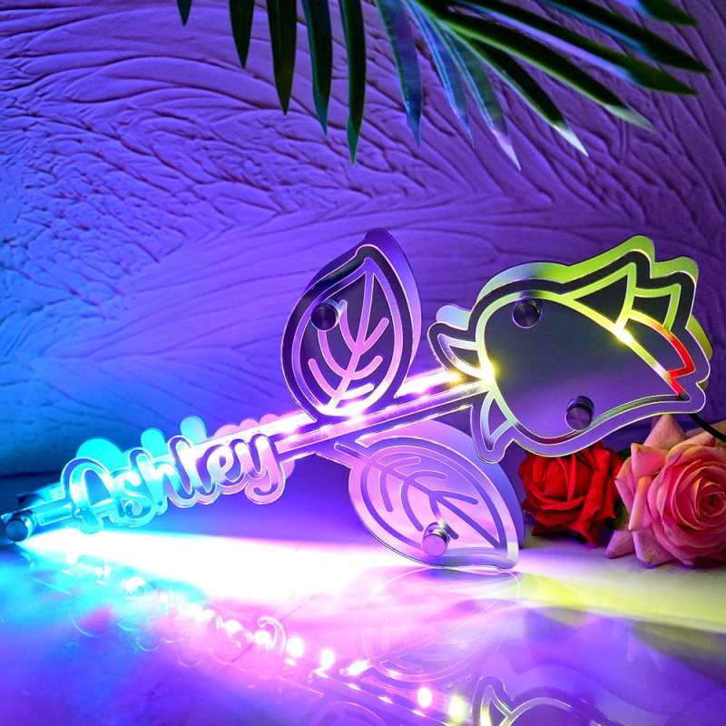 Custom Rose Mirror Light with Name Personalized Gift for Her