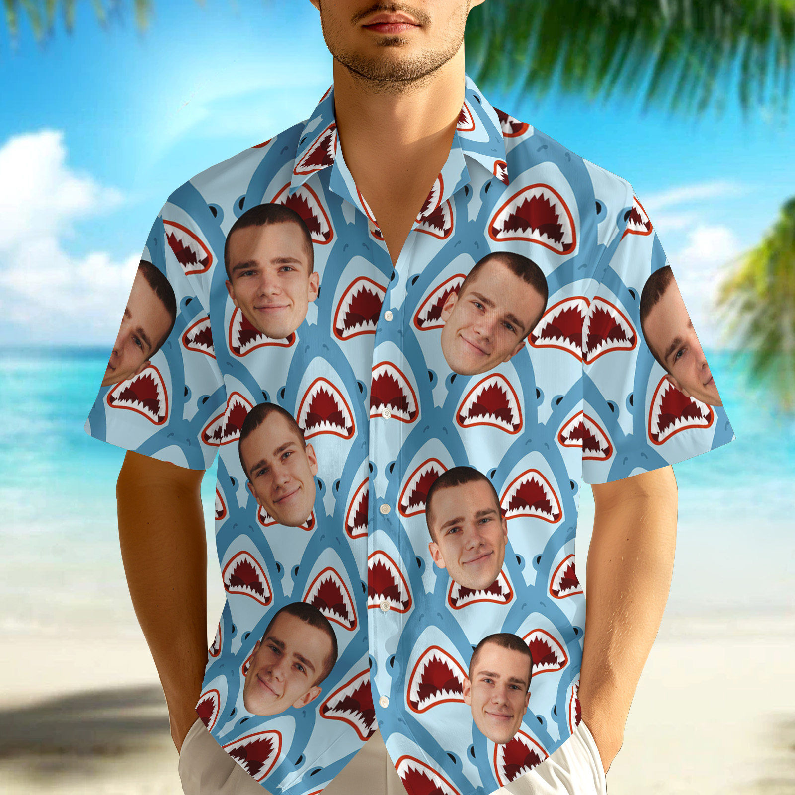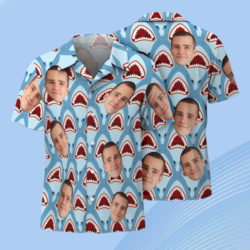 カスタムシャークスハワイアンシャツ パーソナライズされた写真ハワイアンシャツ