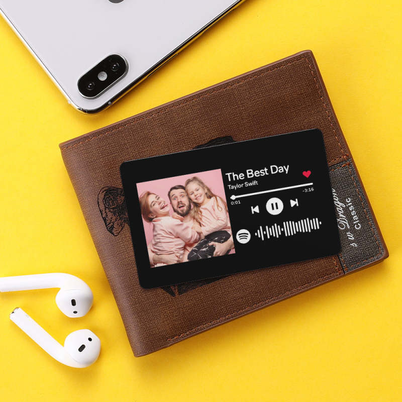 ウォレット挿入カードに追加したい曲のタイトル、アーティスト名、アルバム カバーまたは写真をアップロードして、彼が挿入できる美しくユニークなギフトを作成してください。財布に入れて常に持ち歩きましょう。 Spotify コードを追加します。 Spotify でコードをスキャンすると、すぐに曲の再生が開始されます。