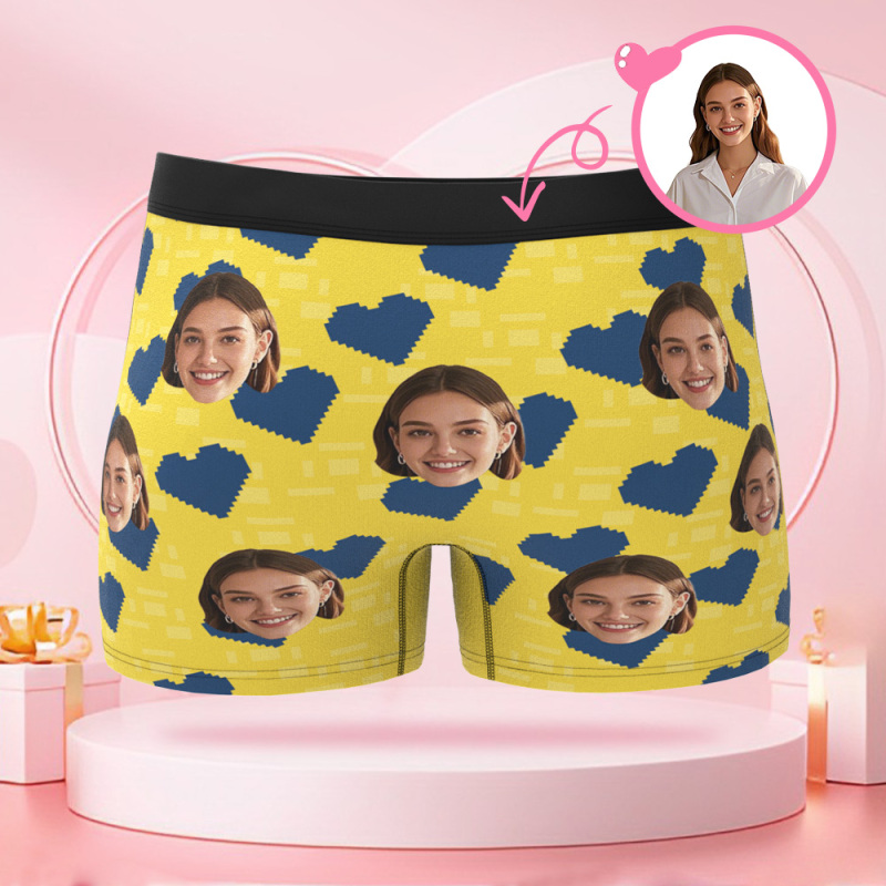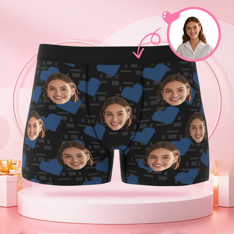 カスタムスクエアハート型メンズボクサー,カスタムフェイス付き,ボーイフレンドへのバレンタインデーのサプライズギフト.