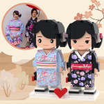 カスタマイズ可能な全身 2 人カスタム レンガ フィギュア青と黒の着物姉妹用