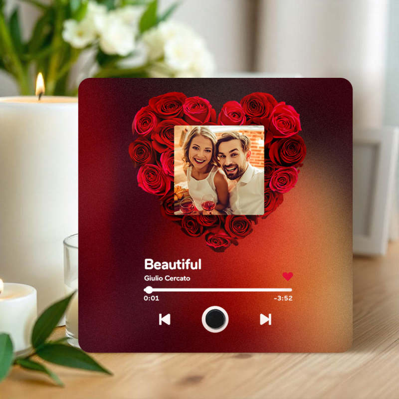 カスタマイズされたアルバム冷蔵庫用マグネット パーソナライズされた音楽冷蔵庫用マグネット 曲を再生可能 カップルへのギフト ローズハート