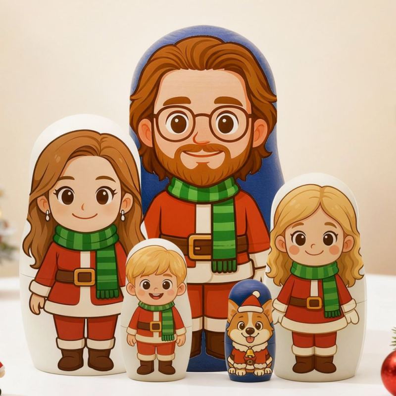 カスタマイズされたヘッドポートレート 入れ子人形 クリスマスコスチューム カスタムフォト 家族ポートレート 漫画スタイル ギフト写真 クリスマスギフト