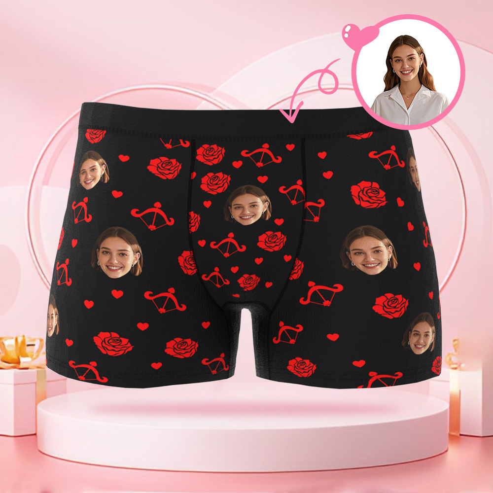 カスタマイズされた写真のバラとキューピッドの矢メンズボクサーブリーフ,カスタマイズされた顔,バレンタインデーのボーイフレンドへのサプライズギフト