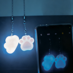 かわいい猫の足跡ライトキーホルダー 充電式ミニバッグチャーム ダブルチェーン付き ホワイト 猫の足跡デザイン