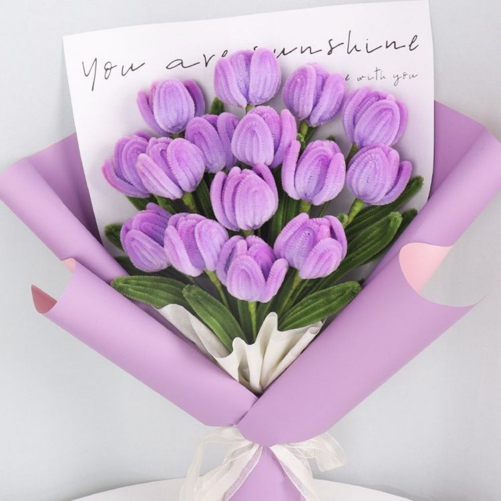 美しいパイプクリーナーの花束、愛する人への意味のある美しい贈り物を作りましょう!手作りのブーケは大きさもちょうどよく、贈り物にぴったりです。贈ったり、家に飾ったりしても、永遠に長持ちします。