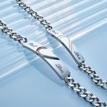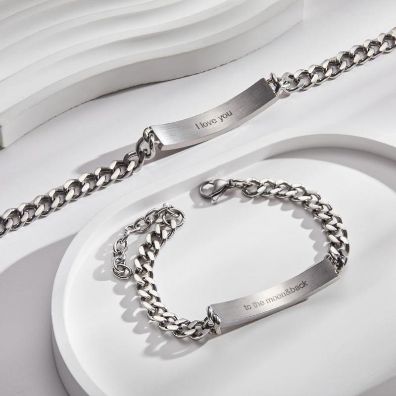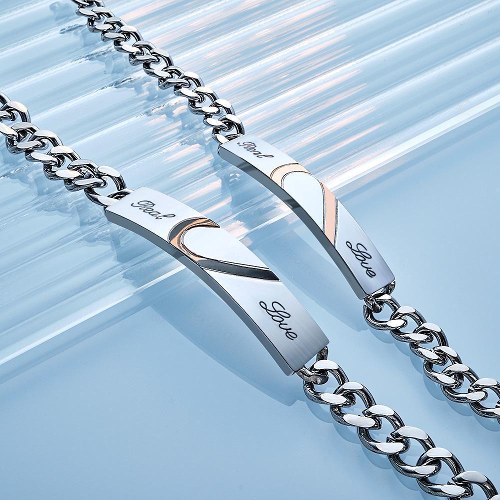 彫刻カップルブレスレットパーソナライズされたラブハートワイドチェーンブレスレットバレンタインデーギフト