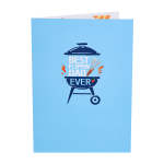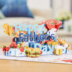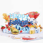 この父の日ポップアップ カード (料理) は高品質の紙カードストックで作られており、ビール、ハンバーガー、グリル、スパチュラ、その他の調理要素。 「Happy Father's Day」の文字がくっきりと浮かび上がります。あなたの料理を褒めて、あなたの愛と気遣いを表現するために、史上最高のひねくれたお父さんにこのメッセージを送りましょう。