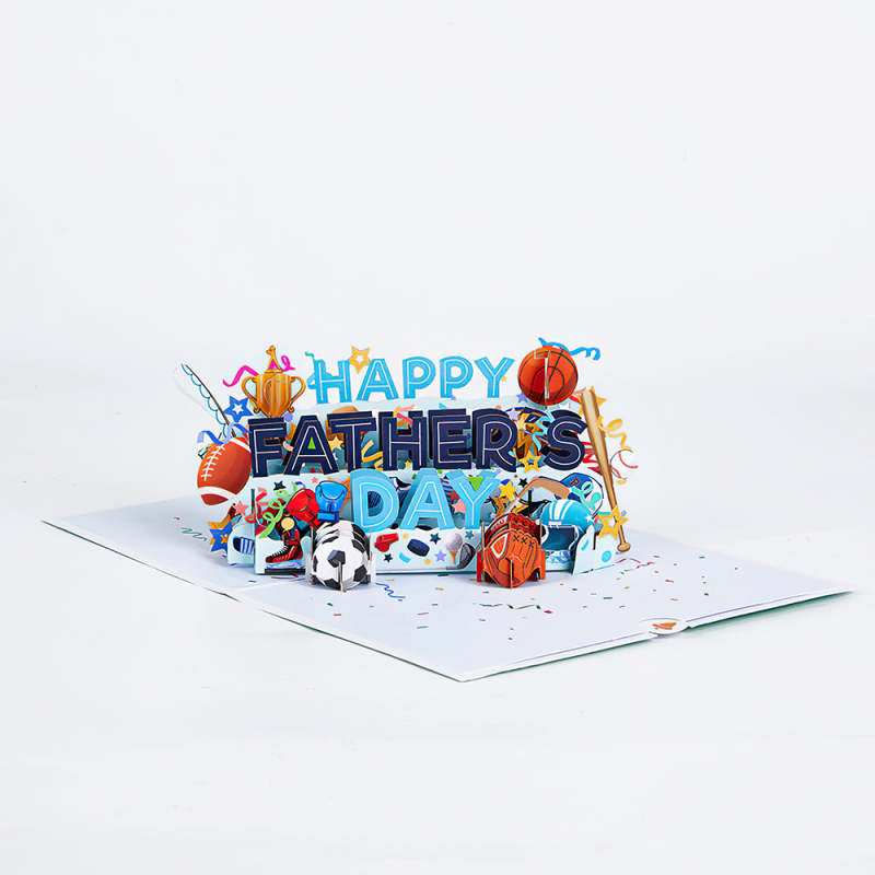 今年の父の日ポップアップ カード (スポーツ) カードは高品質の紙カードストックで作られており、アメリカン フットボール、バスケットボール、サッカー、野球、アイスホッケー、ボクシング、釣り、その他のスポーツ要素が特徴です。 「Happy Father's Day」の文字がくっきりと浮かび上がります。お父さんに送って、もっと運動するよう励まし、強い体と健康を願ってください。