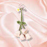 花ニットキーホルダーバッグ用かぎ針編みカンパニュラキーホルダー手作りギフト