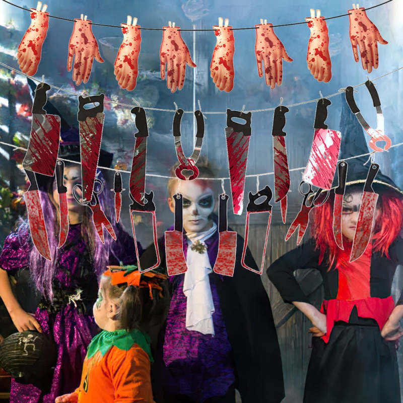 このお祝いの吊り下げバナーでハロウィーンのお祝いを飾りましょう!ハロウィンパーティーに最適です。このハロウィーン パーティーの必需品で、あなたの空間を不気味なお祝いに変えましょう。