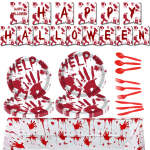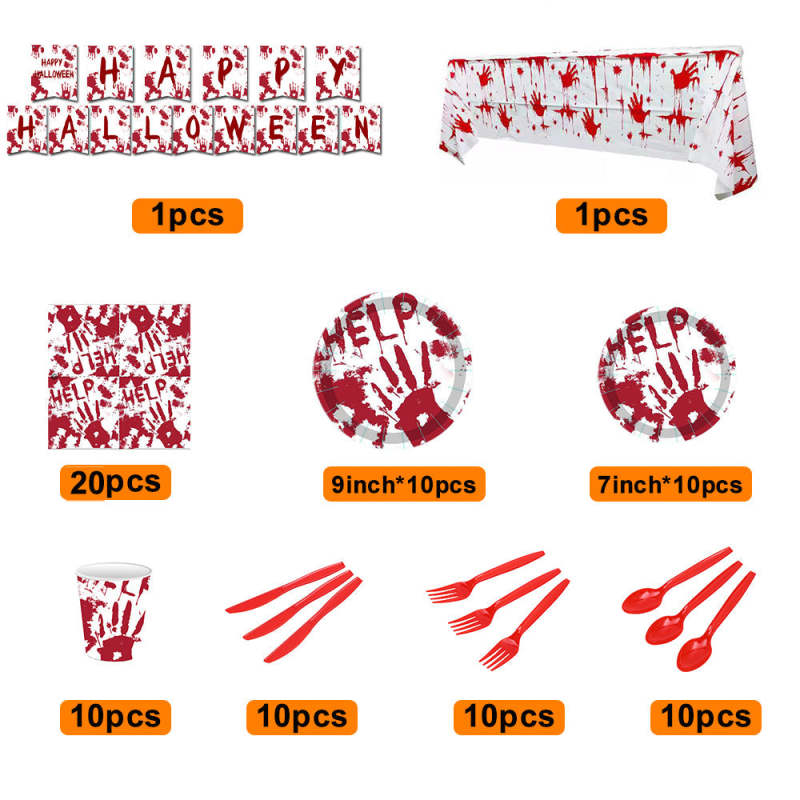 ハロウィンパーティー ブラッディハンズ 使い捨て食器キット ハロウィンパーティーデコレーション用品 82個
