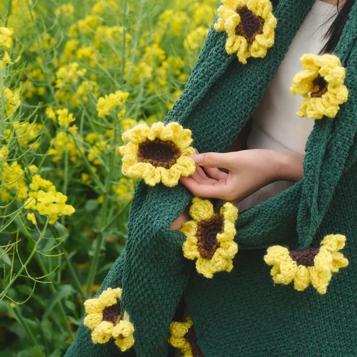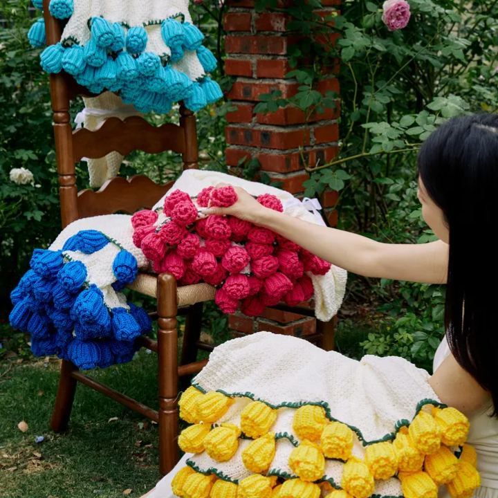 ウールの花々が咲き誇る,いつまでも心に残る告白を!このハンドメイドブランケットは,様々な色のウール糸を巧みに組み合わせることで,花びらが自然な咲き誇る効果を生み出します.バレンタインデーには甘い愛の証,母の日には感謝のハグ.愛する人を一年365日,優しく包み込んでくれる贈り物です.