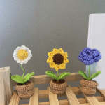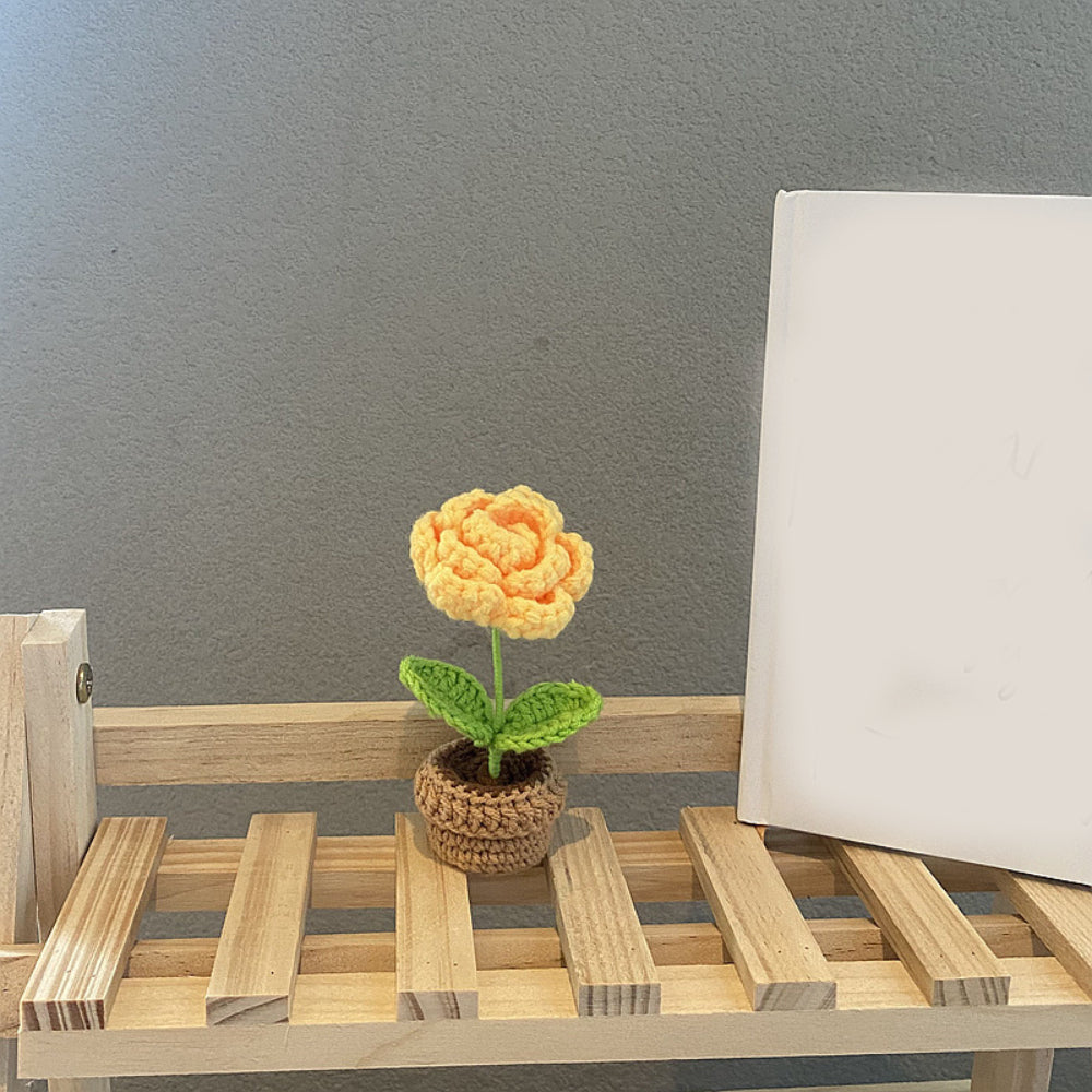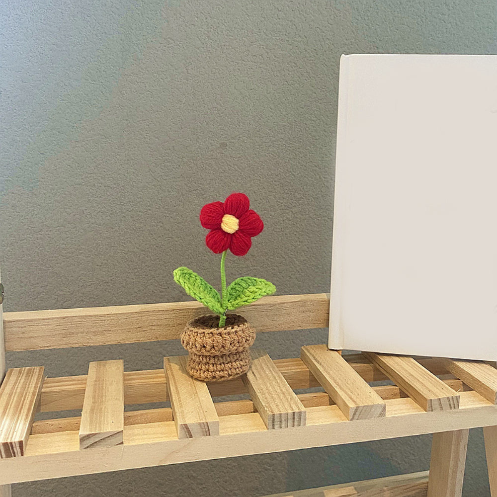 手作りかぎ針編みの花完成手織りニット鉢植え手芸愛好家へのギフト
