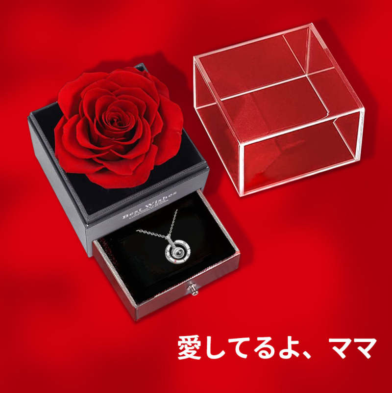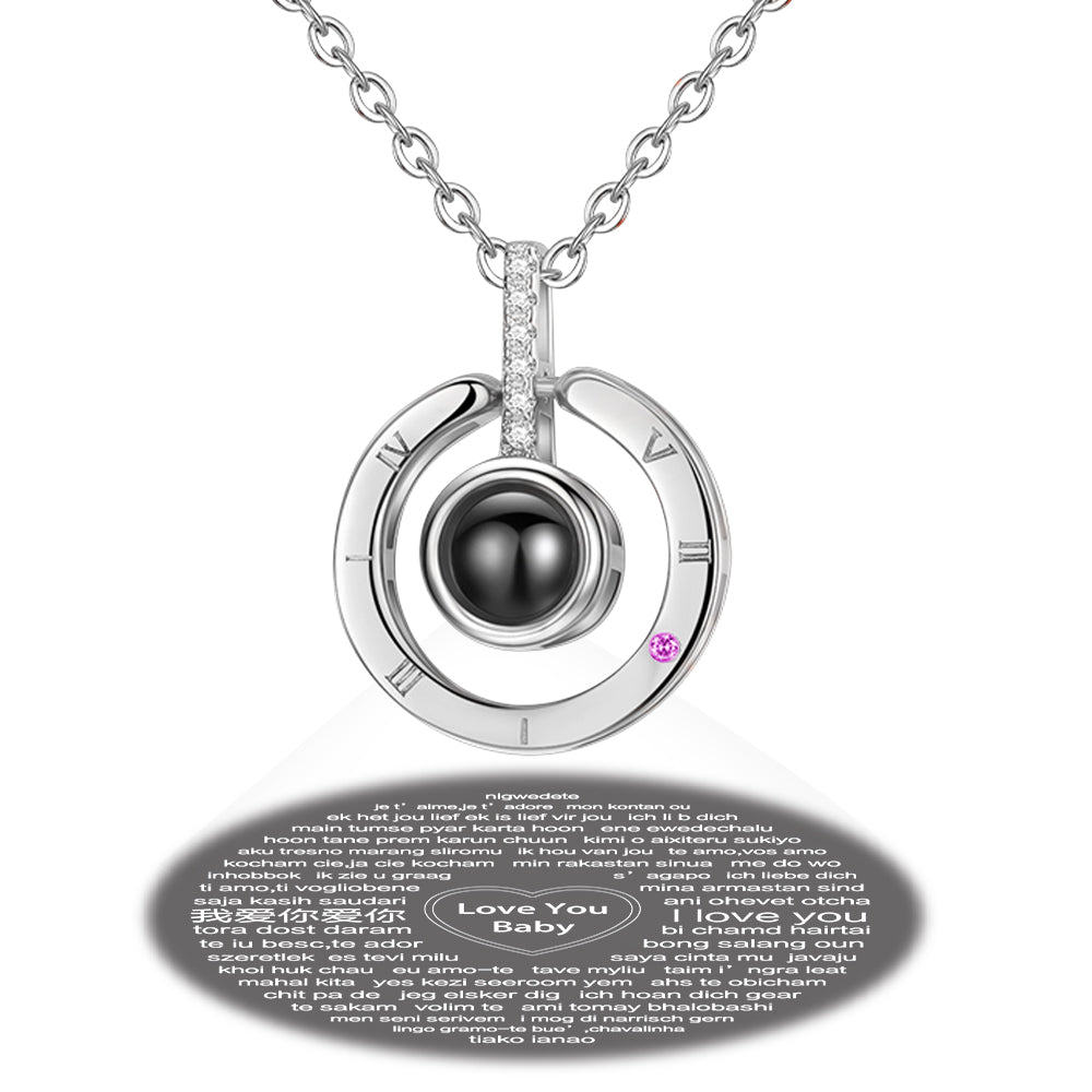 I Love You ネックレス 100 言語 プロジェクション刻印ネックレス ラウンド型 ママ向け-フラワーボックス付き