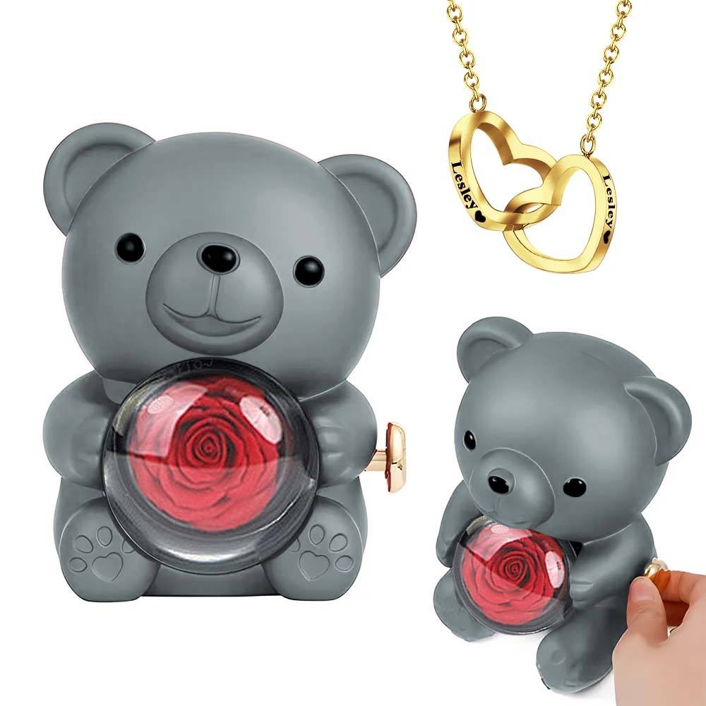本物のバラのクマのギフトボックス付き刻印ハートネックレス バラの形をしたネックレスギフトボックス ジュエリーギフトボックス