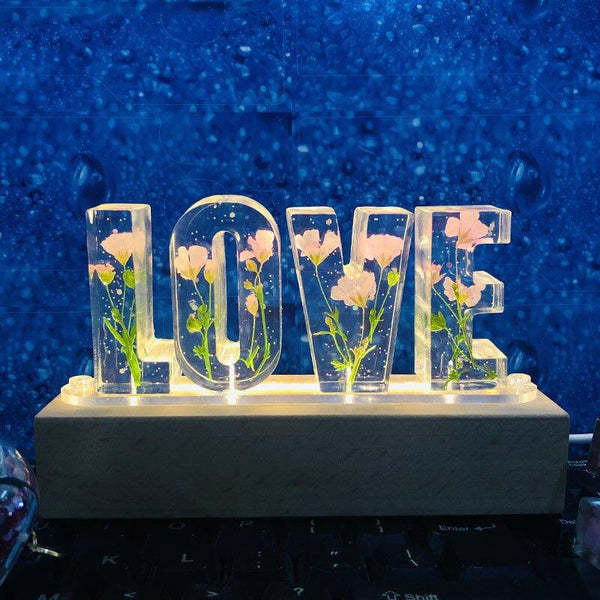 Love ドライローズフラワーレジンレターランプ-ローズ
