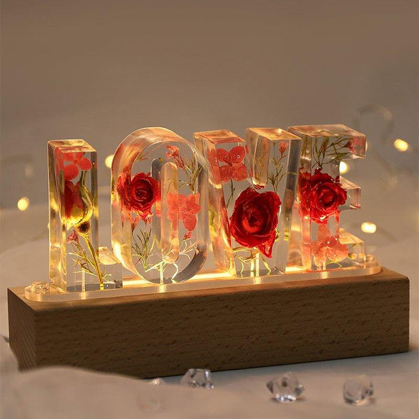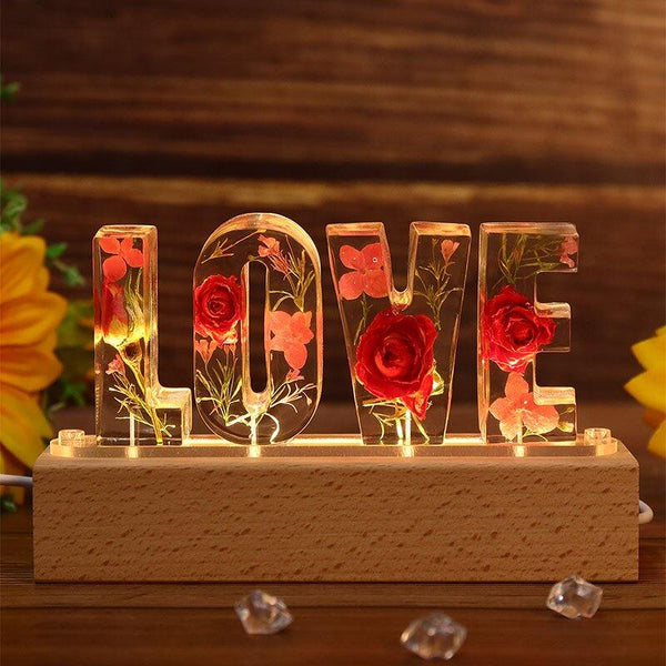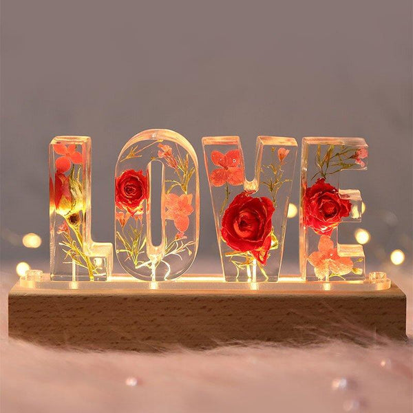 Love ドライローズフラワーレジンレターランプ-ローあさぎのはな