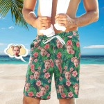 メンズ カスタム フェイス ビーチ トランクス 全面プリント フォト ショーツ 緑の葉と花