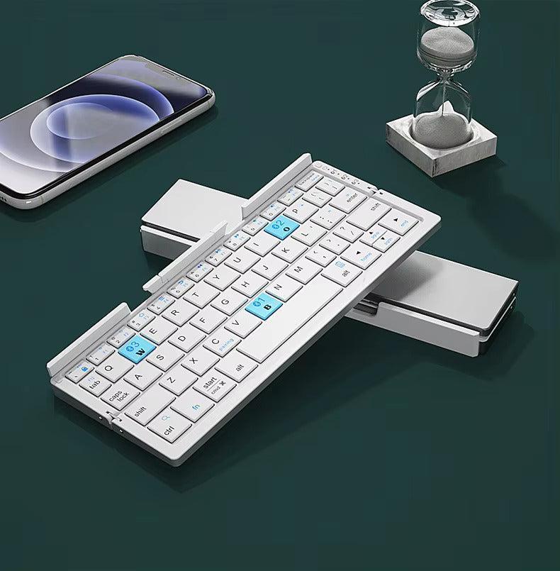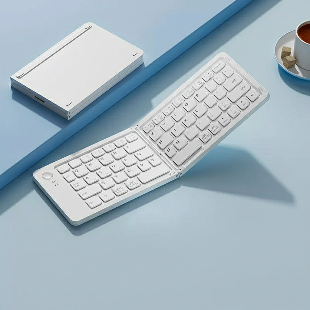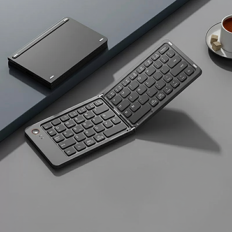 コンパクト&折りたたみ式:独自の二つ折りデザインにより,閉じるとキーボードのサイズが半分になり,ポケットや小さなバッグに簡単に収納できます.