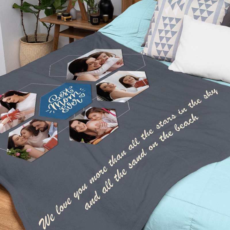 この毛布は素晴らしい母の日の贈り物です。あなたはあなた自身のデザインをすることができます。友人や家族への贈り物としても贈ることができます。私たちはあなたがあなた自身の毛布をパーソナライズするのを簡単にします。あなたのカップル、あなたの家族、あなたの赤ちゃん、そしてもっとたくさんの写真をアップロードしてください、そして私たちの経験豊富なデザイナーが残りの仕事を引き受けます。お気に入りの写真で暖かく居心地の良い滞在を。それはまたあなたの家を飾るか、またはユニークな贈り物として与えるための素晴らしい方法です。
