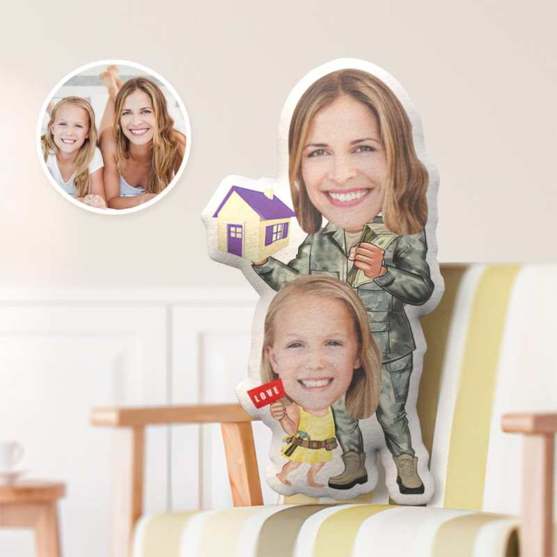 カスタム写真枕母の日ギフト- 女の子と軍のお母さん