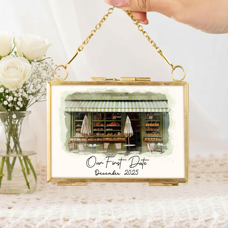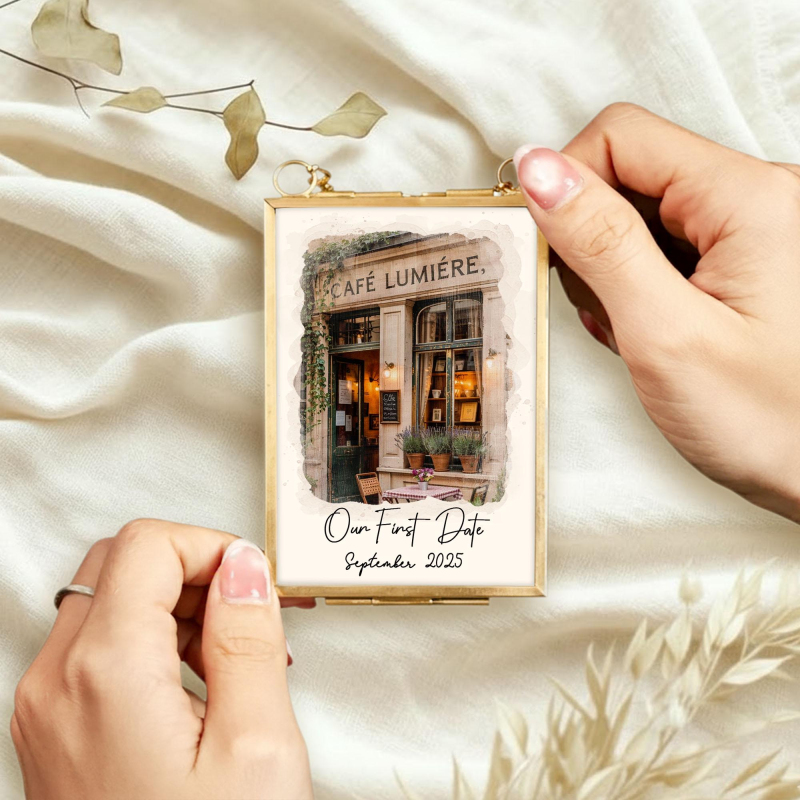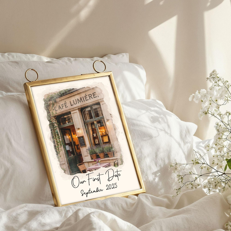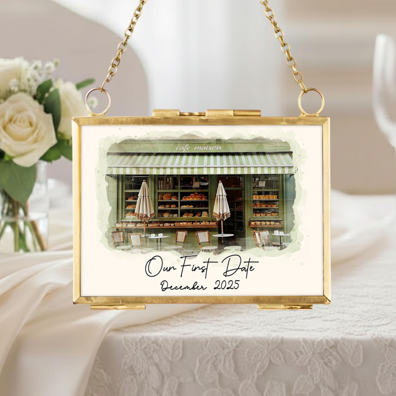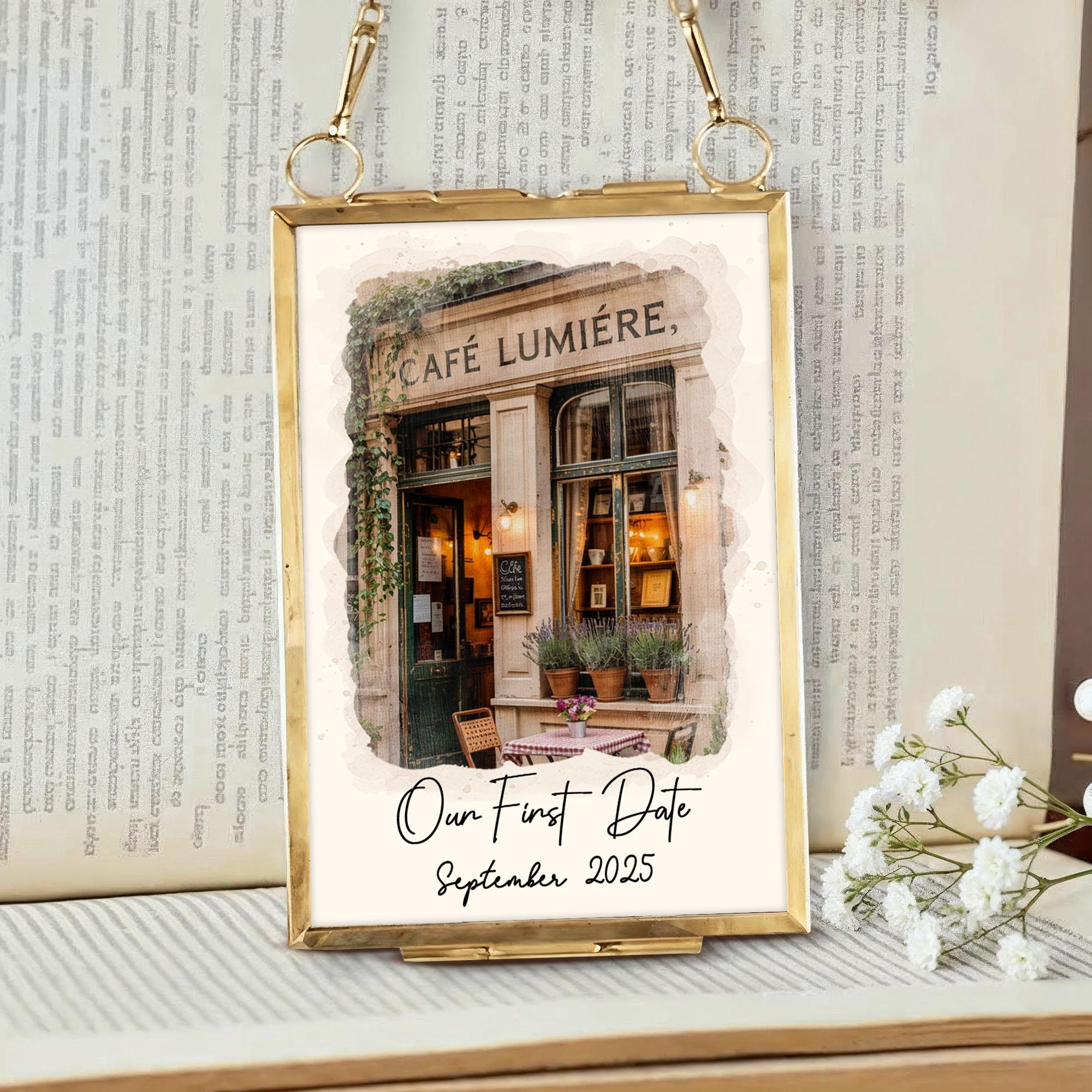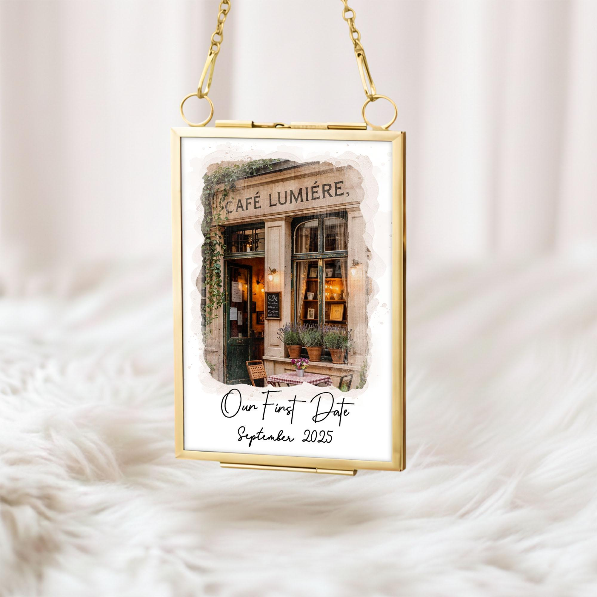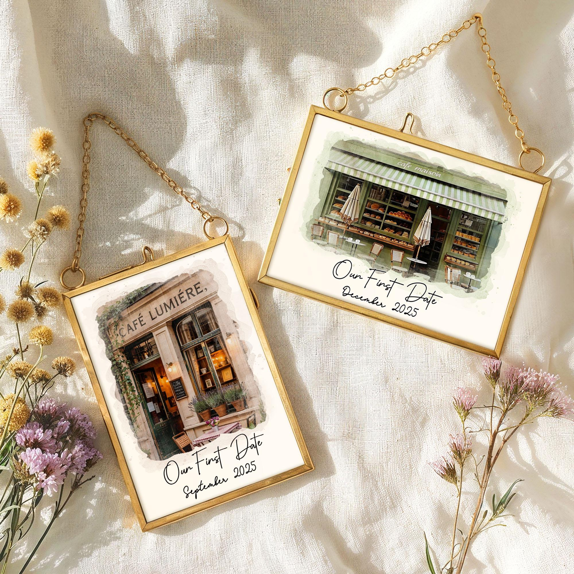 初デート会場のポートレートフレーム,カスタム水彩画カップルイラスト,パーソナライズされた記念日ギフト,婚約ギフト,バレンタインギフト