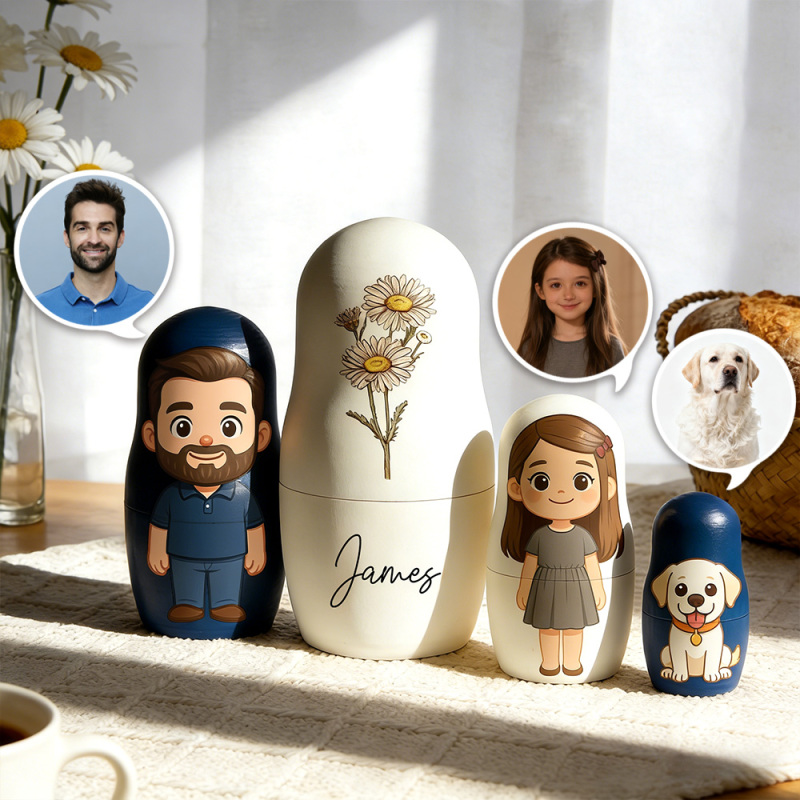 愛情と遊び心のある漫画タッチでデザインされたカスタムポートレート ネスティングドールで,どんな空間にも笑顔と彩りを添えましょう.手描きではなく,すべてのドールセットには,お客様の写真に基づいてカスタムイラストによるポートレートが描かれ,一人ひとりの魅力を捉えた,楽しく表情豊かなアート作品に仕上がっています.