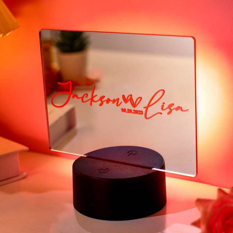 Personalized Couple Name Mirror Lamp Heart Light Love Gift