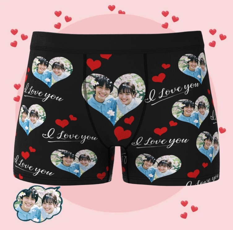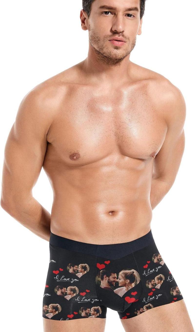 パーソナライズされたカスタムボクサーブリーフ男性用画像付き楽しい下着ショーツ快適なソフトバレンタインデーギフト