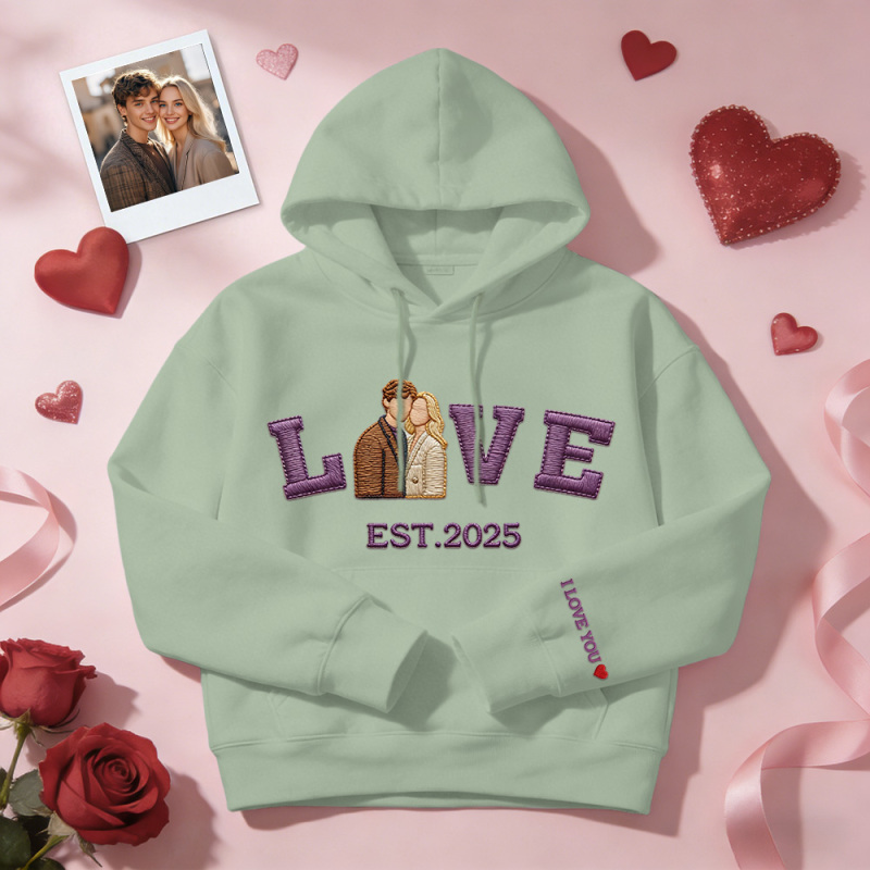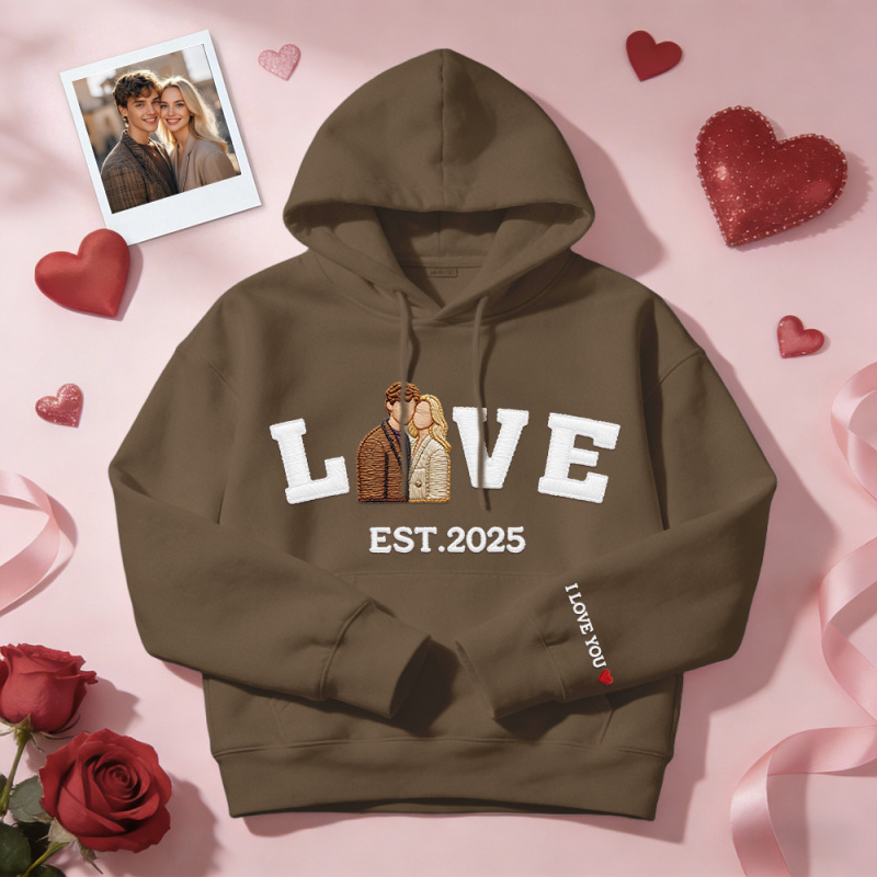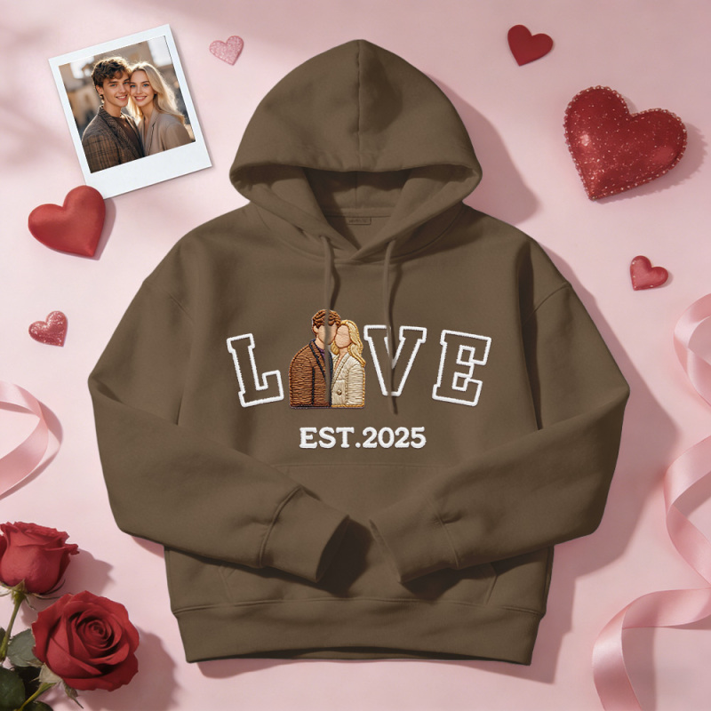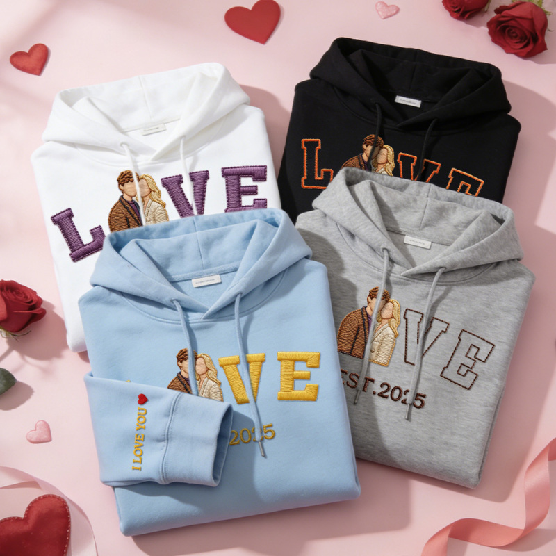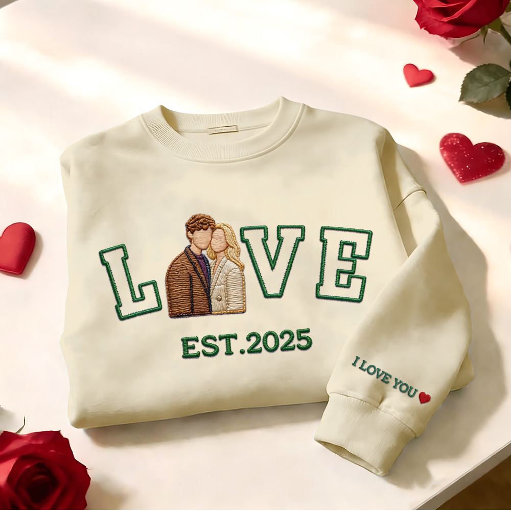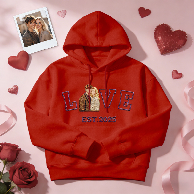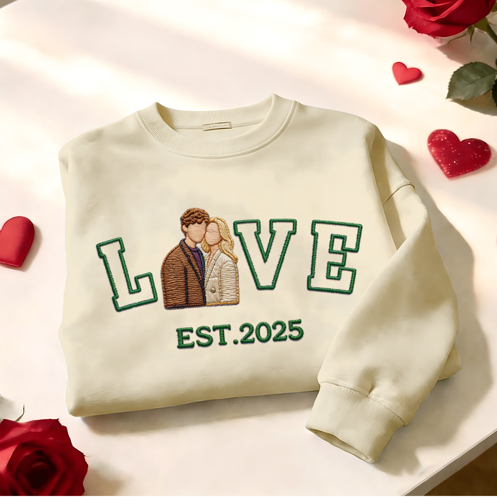 あなたの愛を,お気に入りの写真から時代を超えた刺繍デザインをデザインした,パーソナライズされたカップル向けスウェットシャツまたはパーカーで表現しましょう.カスタムカップルポートレート,ロマンチックなLOVEのメッセージ,そして特別なEST年をあしらったこのアイテムは,大切な瞬間をさりげなく,そして永遠に記憶に残る形で表現します.