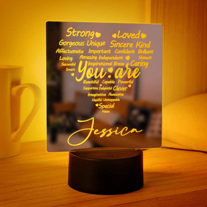 Personalized Engraved Mirror Light Heart Colorful Lamp Gift