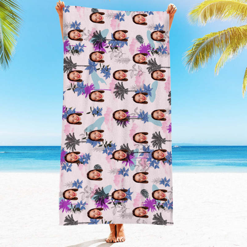 パーソナライズされたフェイス ビーチ タオル カスタム ハワイアン スタイル ビーチ タオル 面白いギフト