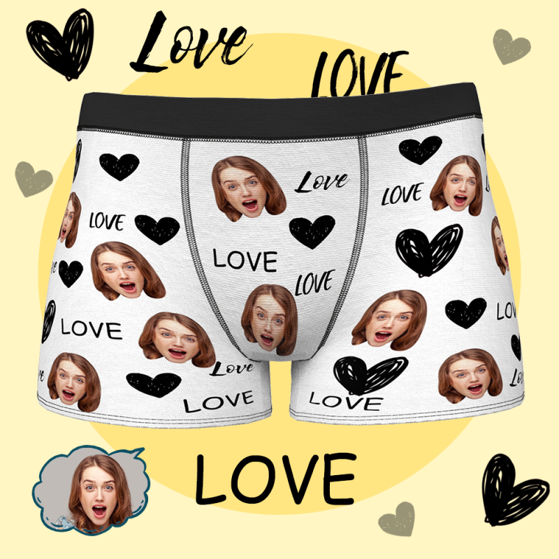 パーソナライズされたフェイスボクサーラブウィズハートカスタムボクサー彼のためのカスタム下着男性のためのカスタム下着