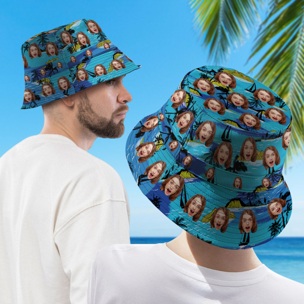 パーソナライズされたフェイスバケットハット両面着用リバーシブルハワイアンスタイルアウトドアサンキャップ