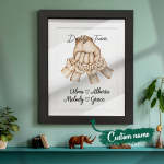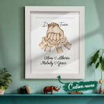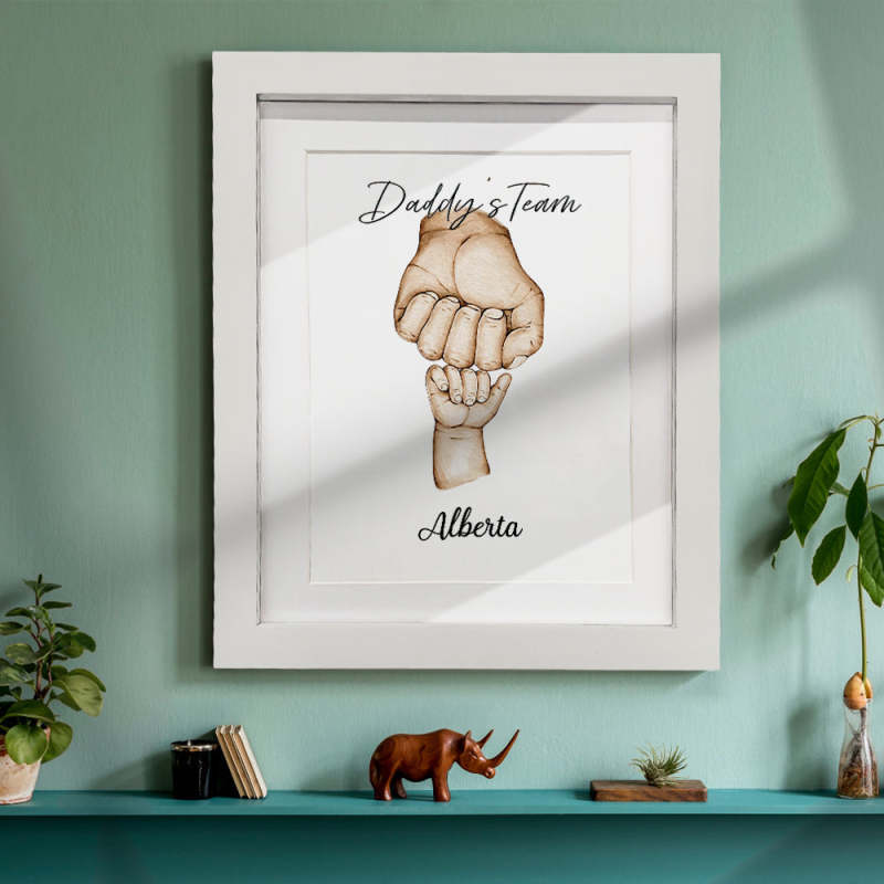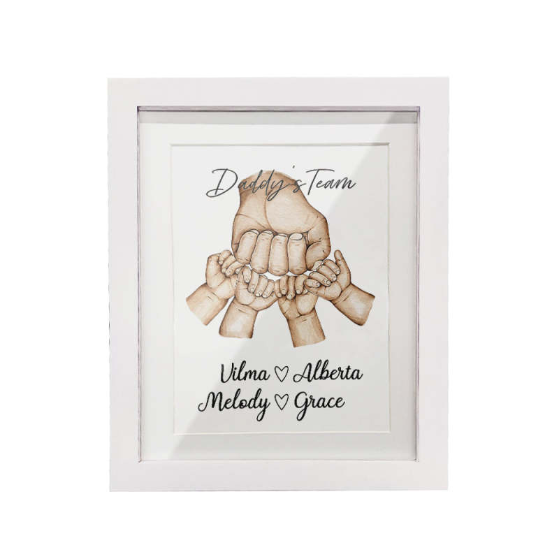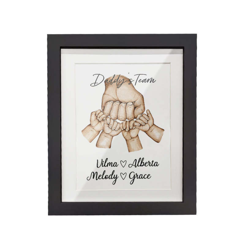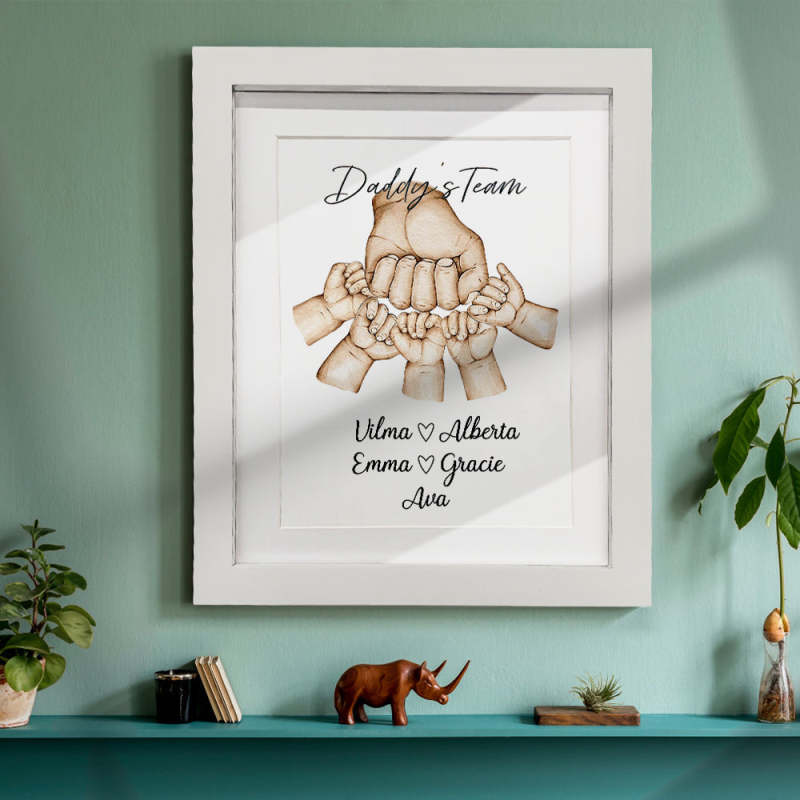 お父さんと「彼のチーム」をフィーチャーしたこの愛らしくて風変わりな「拳をぶつける」水彩ギフトは、お父さんのお気に入りの小さな人々すべての名前を含めるようにカスタマイズできます。これは、ユニークで趣のあるお父さんやおじいちゃんのクリスマスプレゼント、誕生日、父の日、または「あらゆる機会」のギフトになるでしょう。思いやりのある贈り物としてフィスト バンプ フレームを贈って、彼らの顔に笑顔が生まれるのを眺めてください。